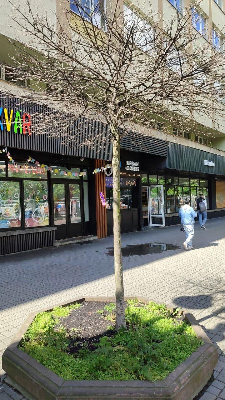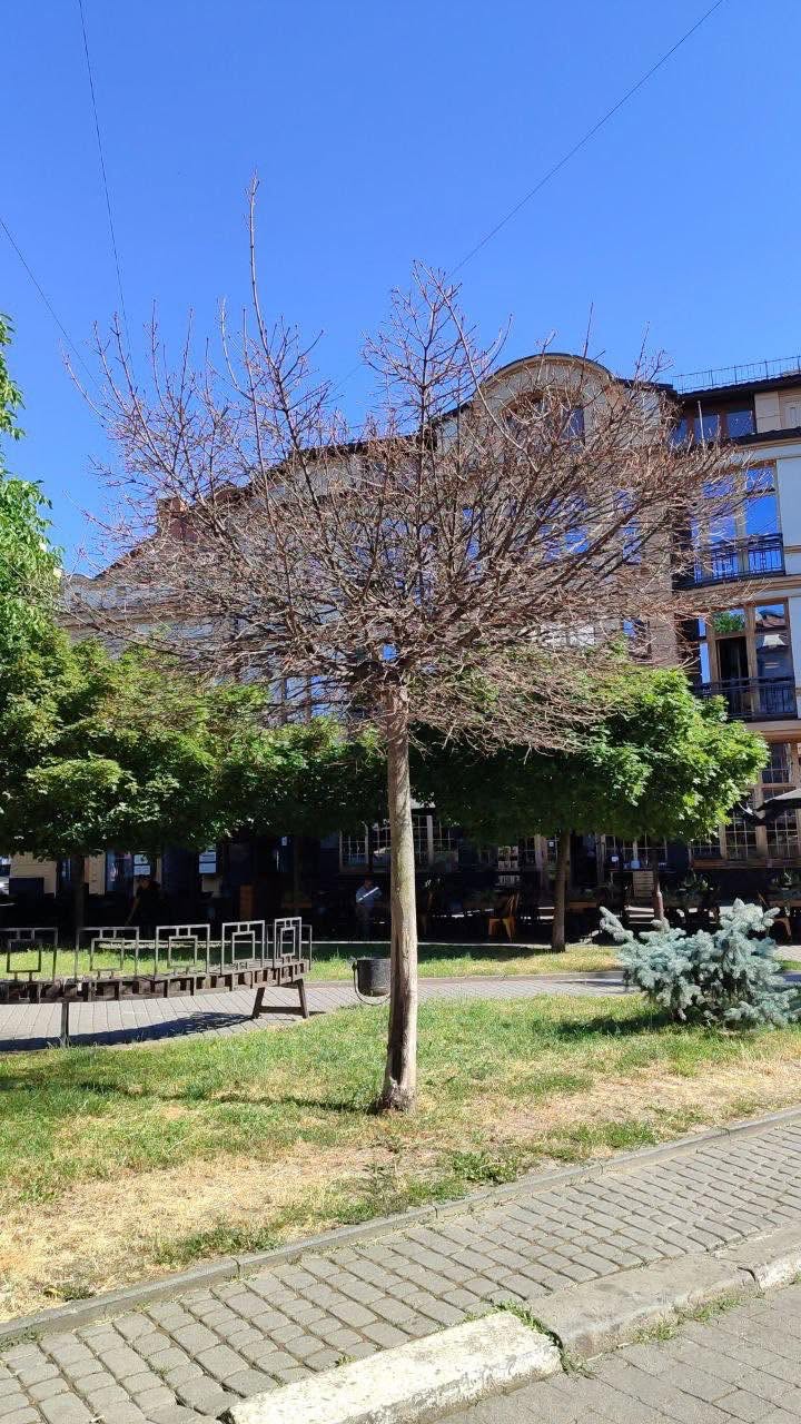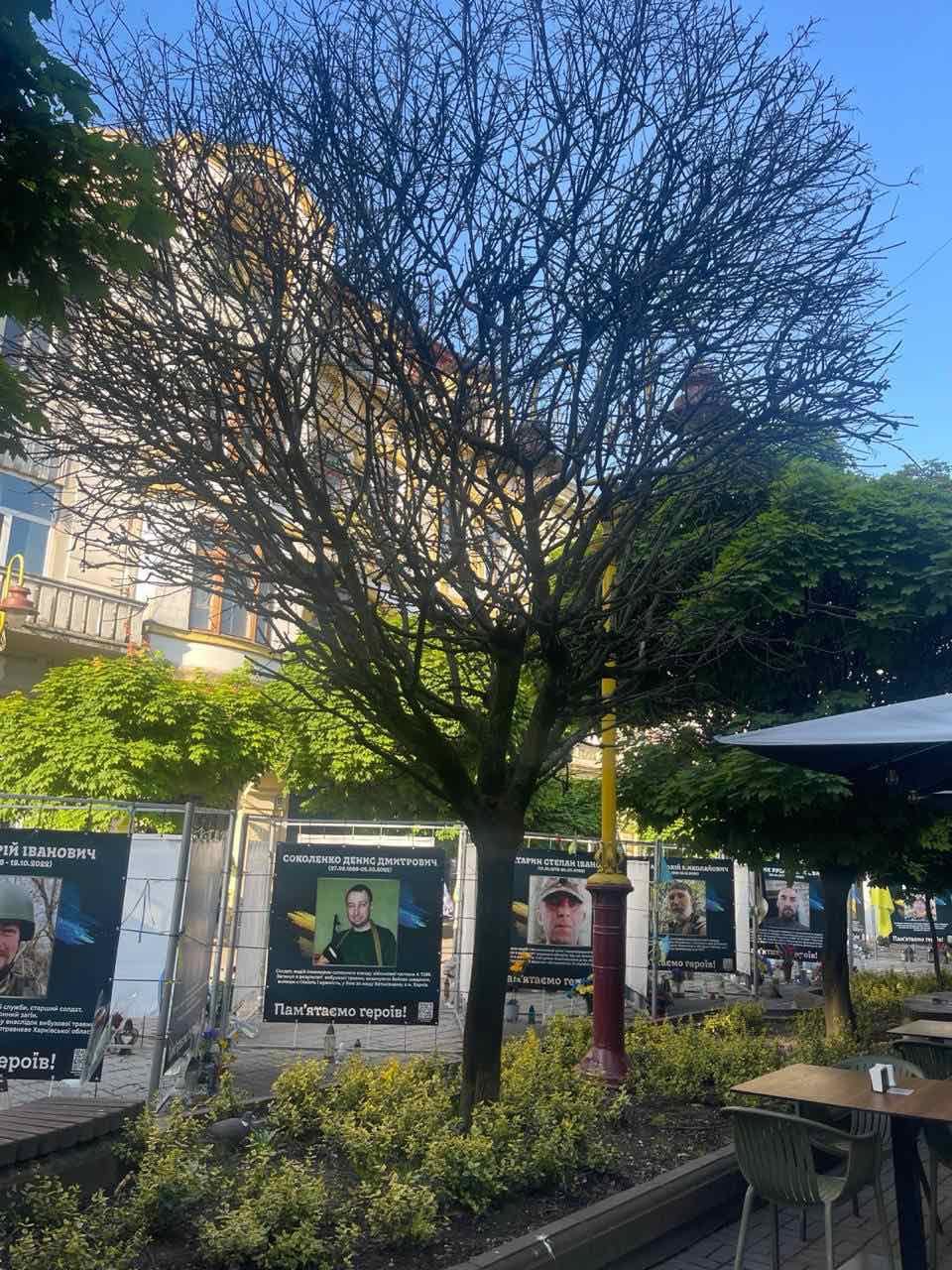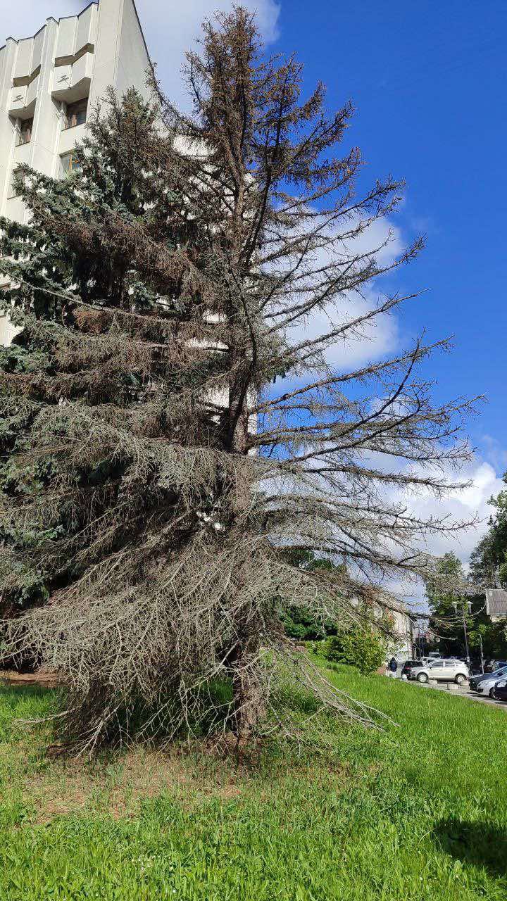 - суху ялинку біля будівлі Івано-Франківської ОДА;