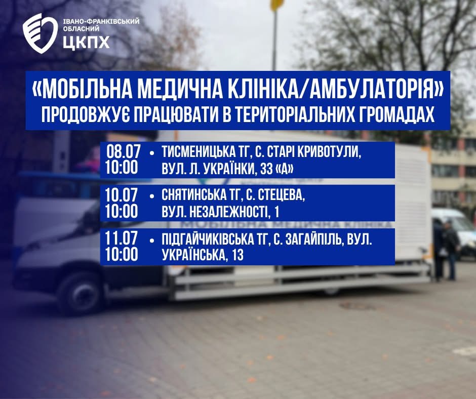 «Мобільна медична клініка» продовжує працювати в територіальних громадах Івано-Франківської області.