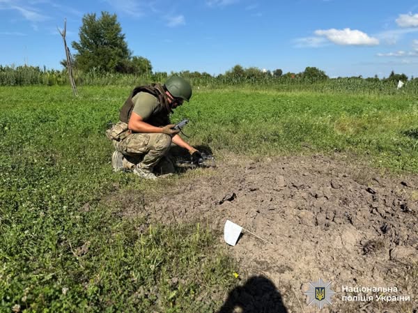 Поліцейські обстежують територію площею близько 12 гектарів. Уже зафіксовано 63 вирви від розривів боєприпасів, а також виявлено 14 ям із вибухонебезпечними елементами, які не здетонували. Усі небезпечні предмети оперативно вилучено та знешкоджено.