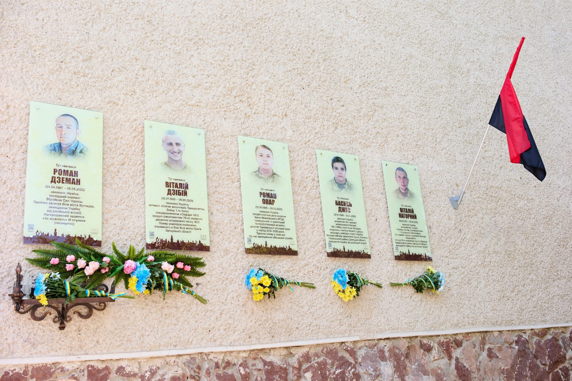 Памʼятні знаки розташовані на фасаді Крихівецького ліцею, випускниками якого були ці хлопці.