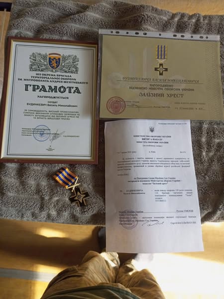 Прикарпатець Василь Будинкевич отримав високу державну відзнаку – медаль «Залізний Хрест» від Міністерства оборони України. Окрім того, військовослужбовця нагородили Грамотою командира 103-ї окремої бригади територіальної оборони імені митрополита Андрея Шептицького.