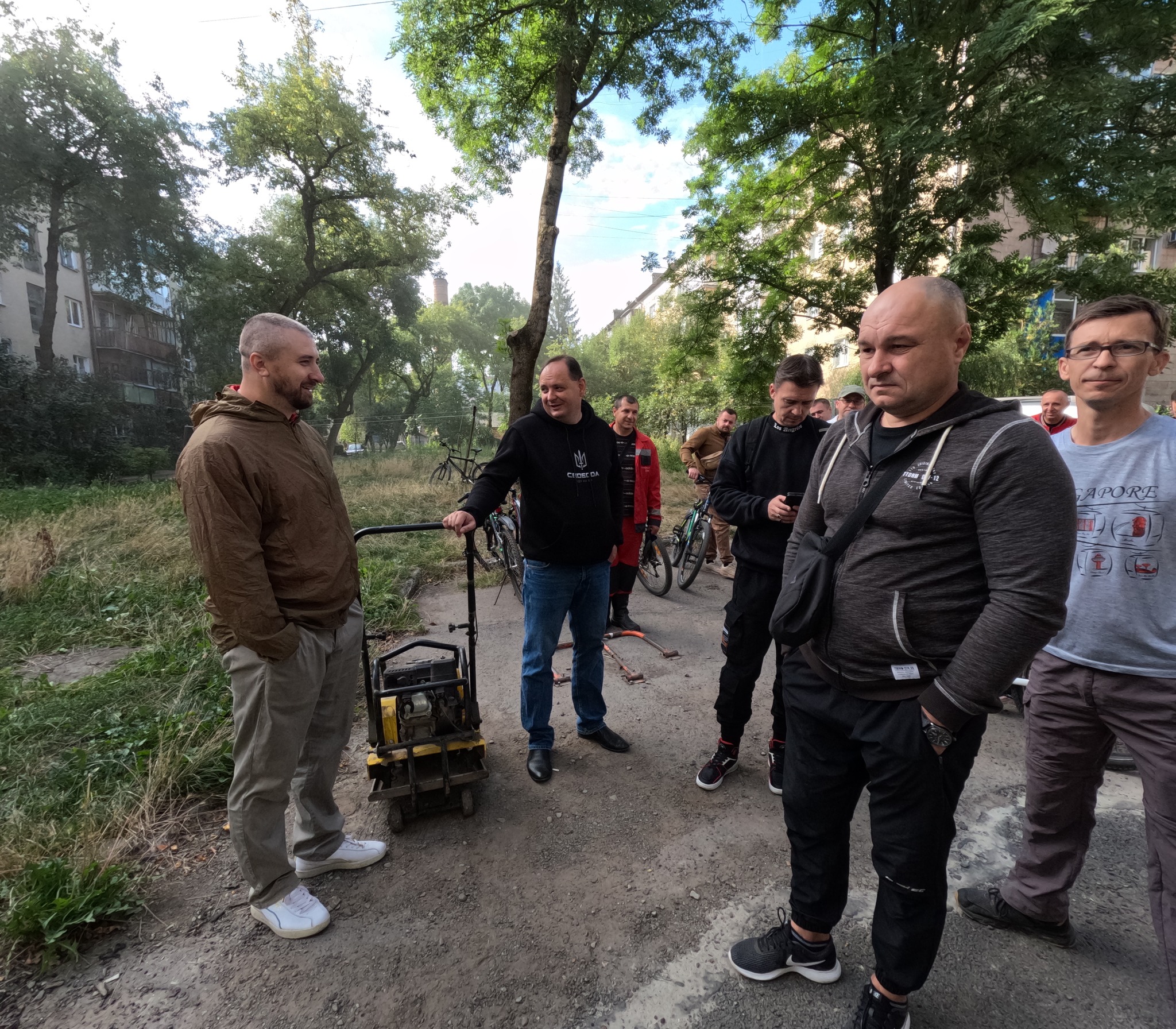 Розпочали з вулиці Довгої, потім вирушили по вулиці Карпатській до університету Нафти і Газу. Після цього проїхались дамбою на Набережній, щоб подивитись, як працюють комунальники в літій сезон у найбільш людних місцях біля річки. Ще були на Береговій, Галицькій та Набережній, де працівники міської ради допомагають робітниками КП «Комфортний дім» латати ями в міжбудинкових проїздах та дворах.
