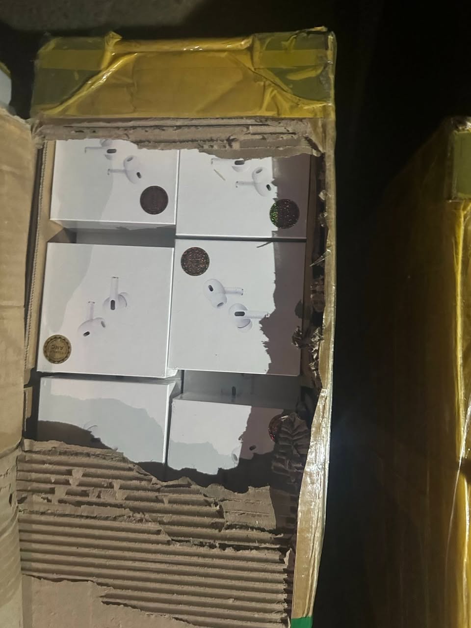 Під час перевірки вантажівки Volvo було виявлено 250 поясних ременів світових брендів та 398 бездротових навушників Apple AirPods. Водій заявив, що вантаж отримав у Словаччині та мав доставити до Харкова.
