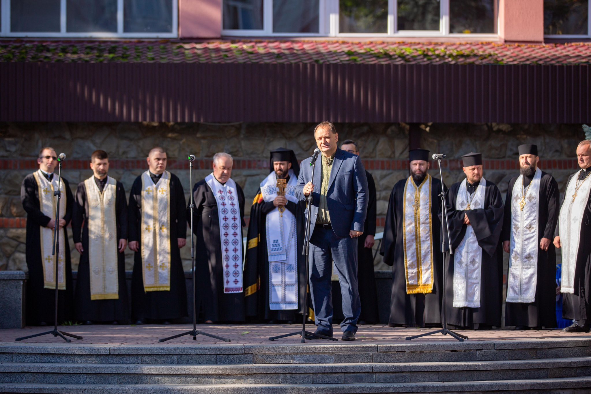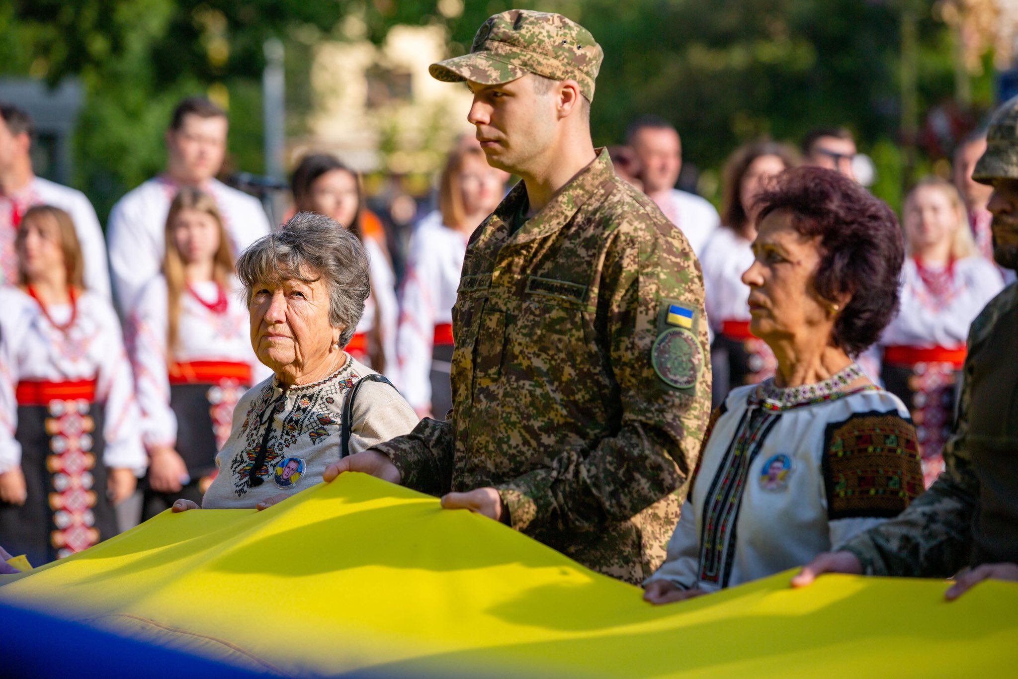 На Вічевому майдані зібралися військовослужбовці, представники місцевої влади, духовенство та мешканці. Під виконання Державного Гімну синьо-жовтий стяг замайорів над містом як символ сили, єдності та незламності українського народу.