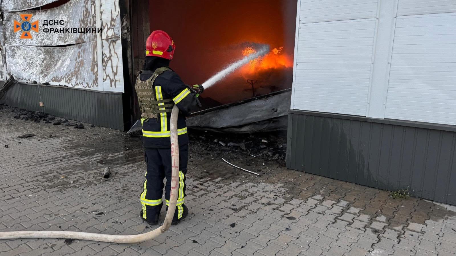 3 вересня внаслідок ворожого удару, у Калуському районі виникла пожежа складських приміщень на 3 осередках, на загальній площі близько 9 тис.м.кв.