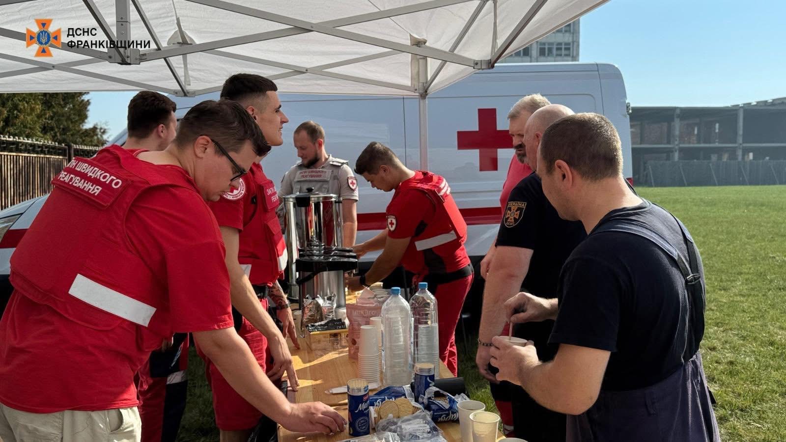 На місці події представники Червоного Хреста України забезпечили рятувальників харчуванням та водою.