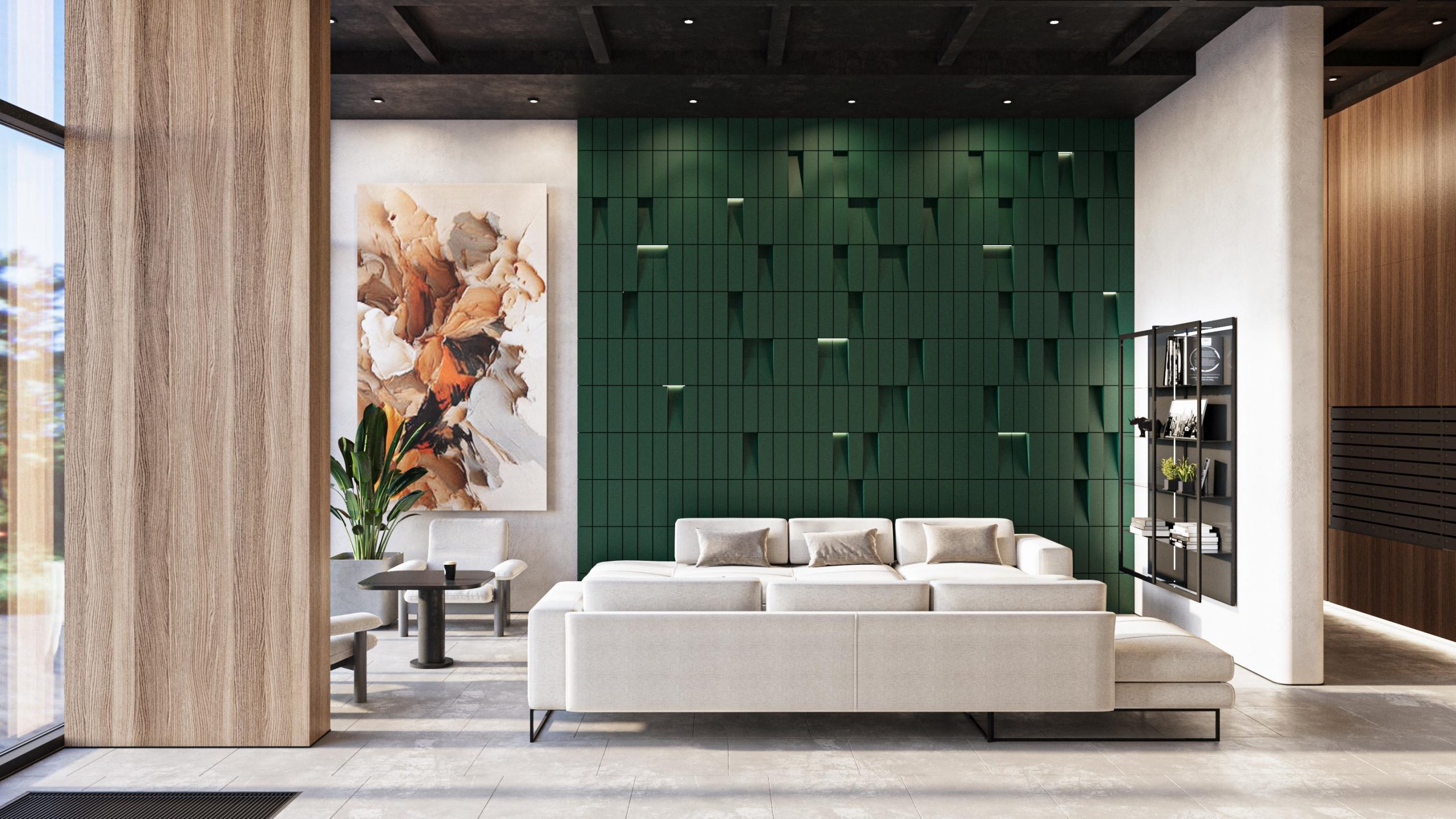 Стильні дизайнерські холи – це ще одна родзинка проєкту. Тут простір поділено на зони: затишний куток для очікування, мінібібліотека та зона з проєктором. Де-небудь ви бачили мінікінотеатри в холах будинків? А в City це буде його унікальною особливістю.