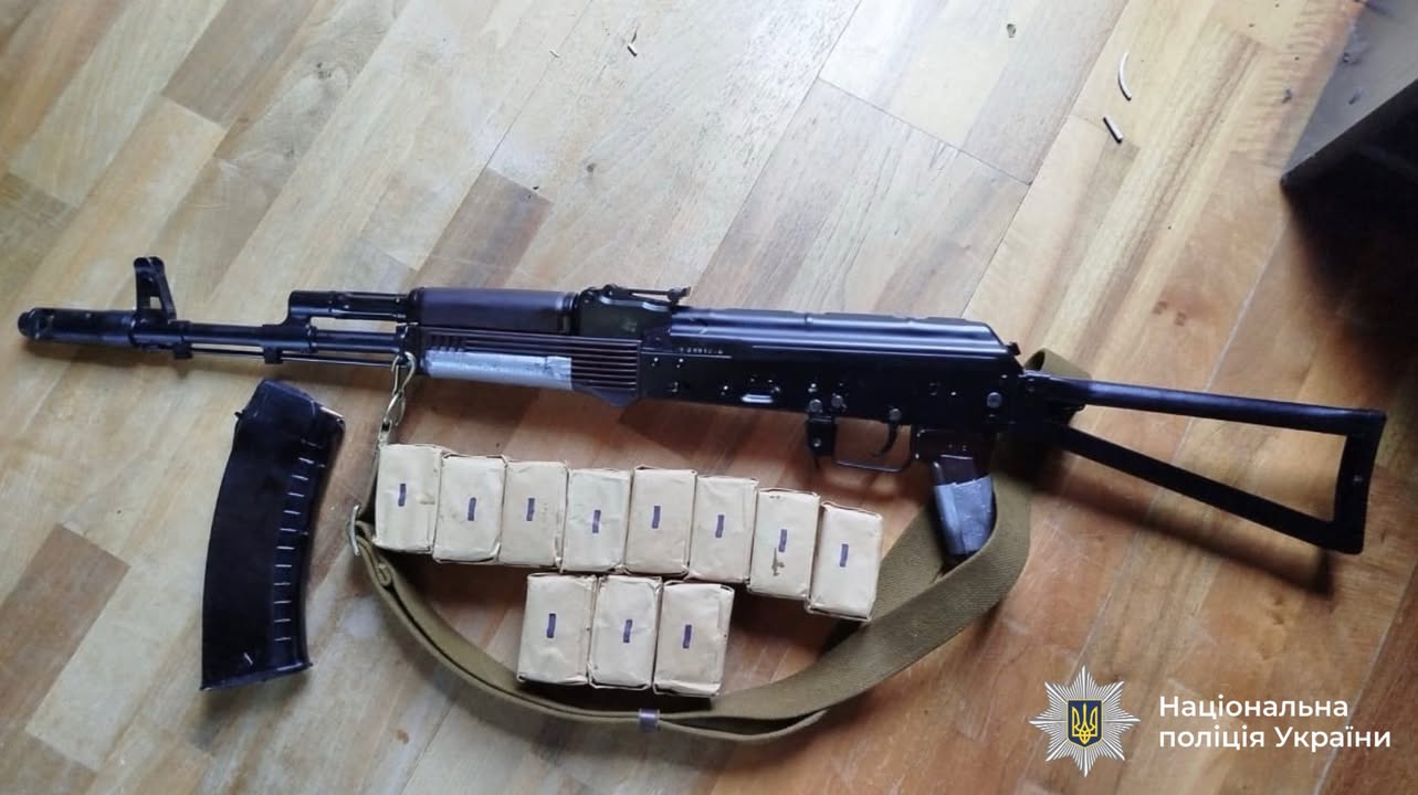 Під час обшуку в його домоволодінні поліцейські виявили й вилучили автомат АКС-74 калібру 5,45 мм та понад 360 бойових патронів, серед яких — бронебійні. Усе зберігалося в сейфі.