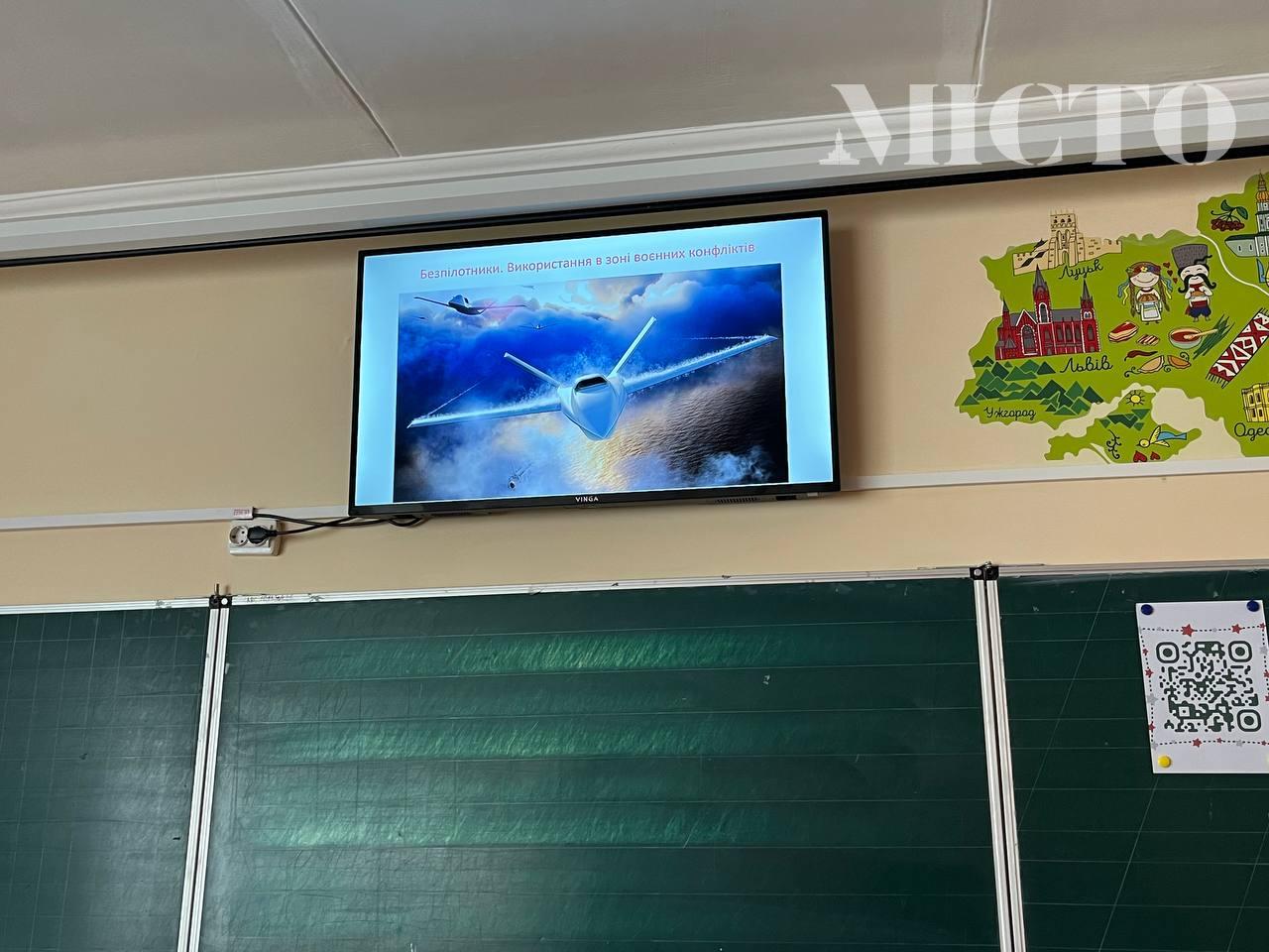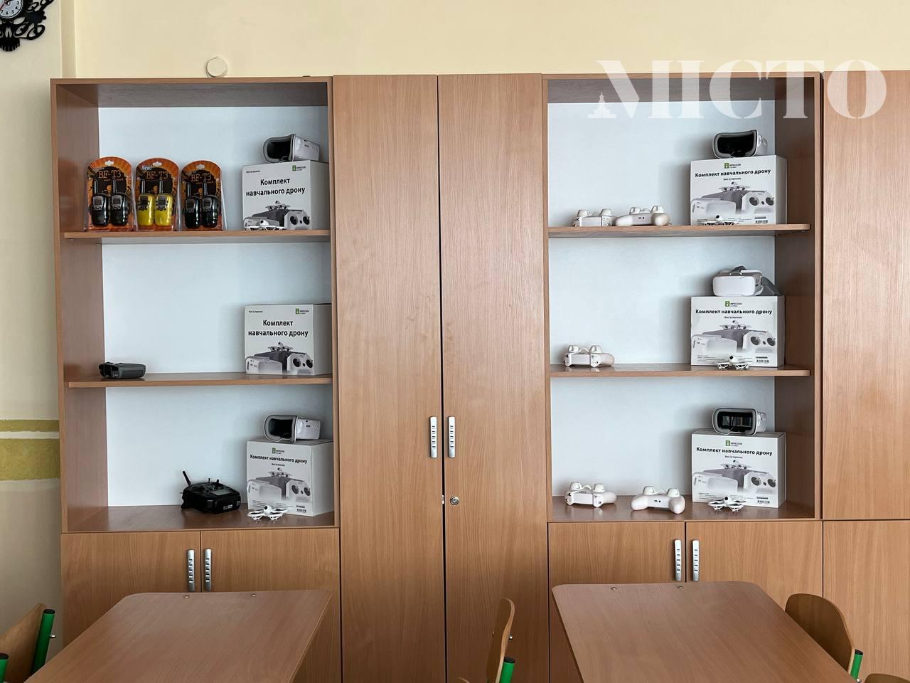 Окремий блок — інтеграція дронів у навчальний процес. Вони застосовуються на уроках географії, фізики, технологій і «Захисту України», зокрема для тактичних завдань, евакуації «пораненого» чи доставки медикаментів.