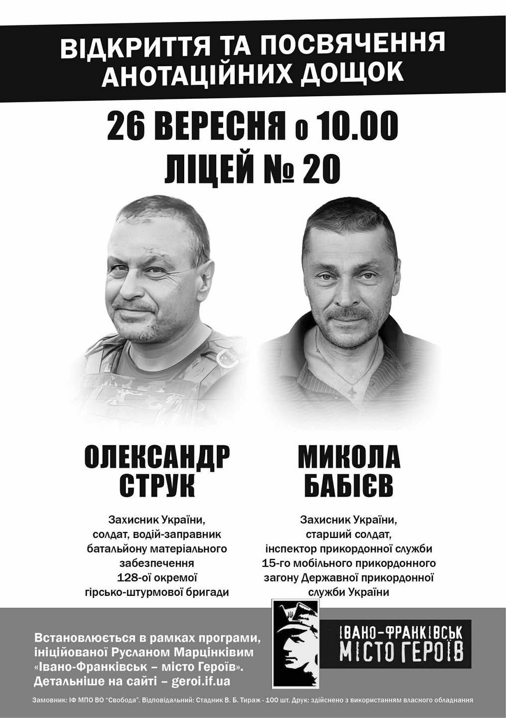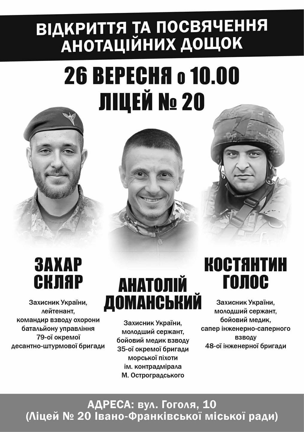 Пʼять анотаційних дощок відкриють в пʼятницю, 26 вересня, нашим полеглим Захисникам.