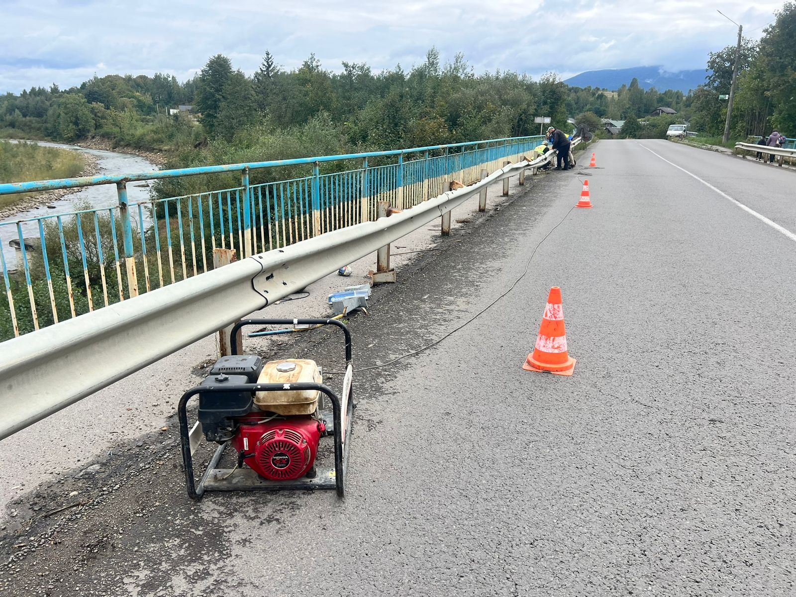 • ремонт мостового огородження на км 7+900 дороги Р-21 Долина – Хуст;