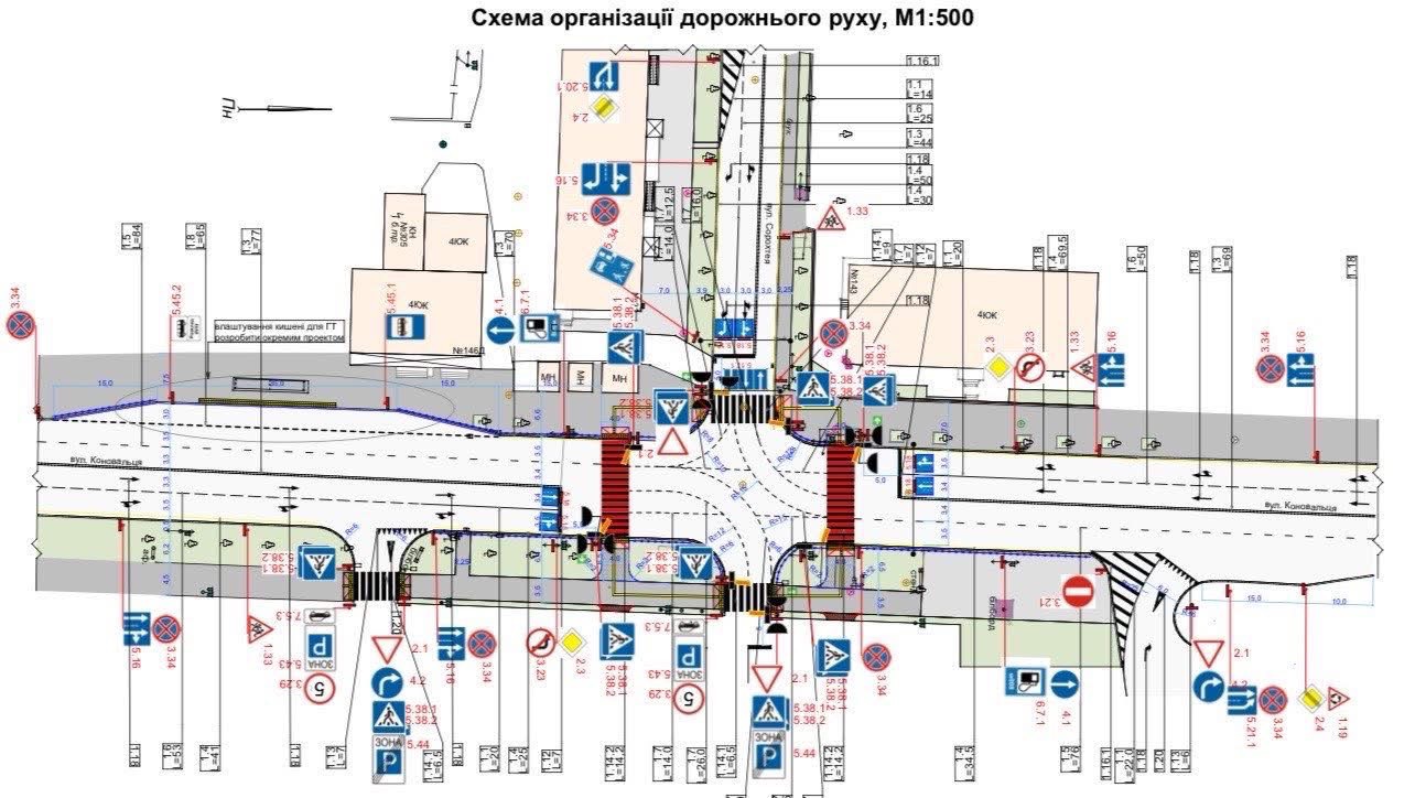 • З вулиці Сорохтея можна буде повертати ліворуч на Є. Коновальця.