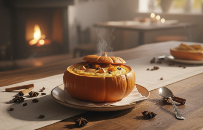 Рисова каша з гарбузом і родзинками, запечена в гарбузі