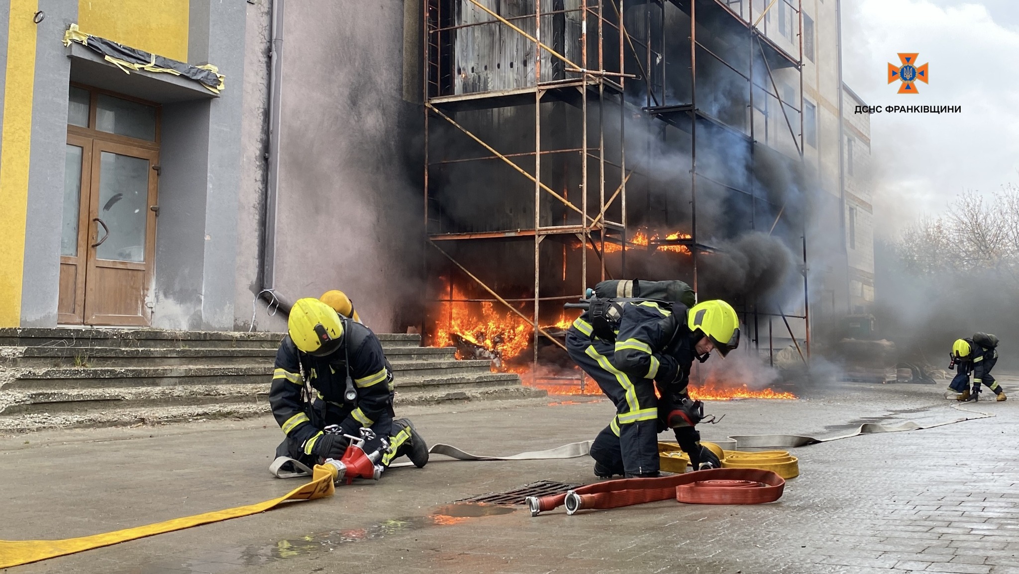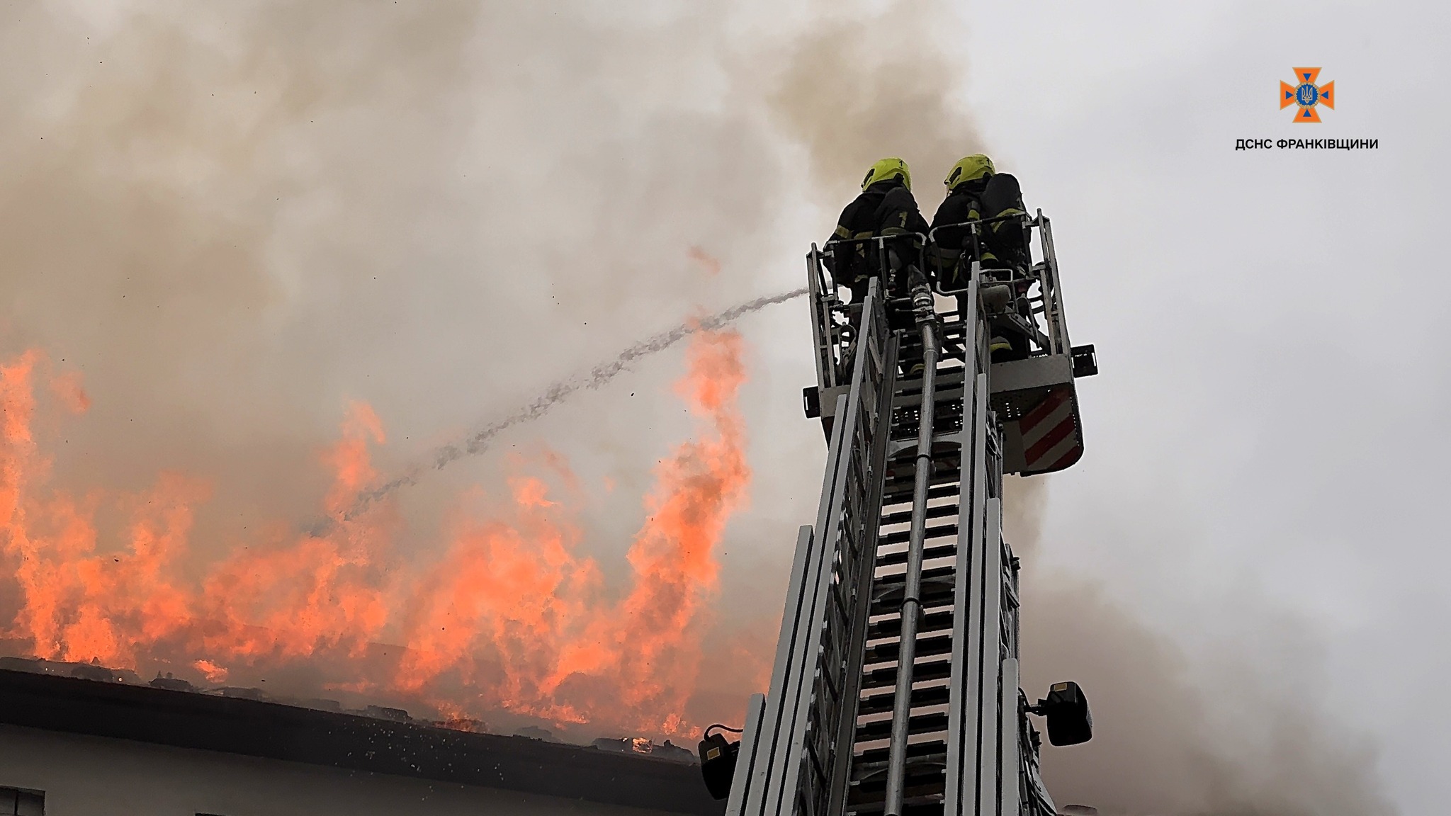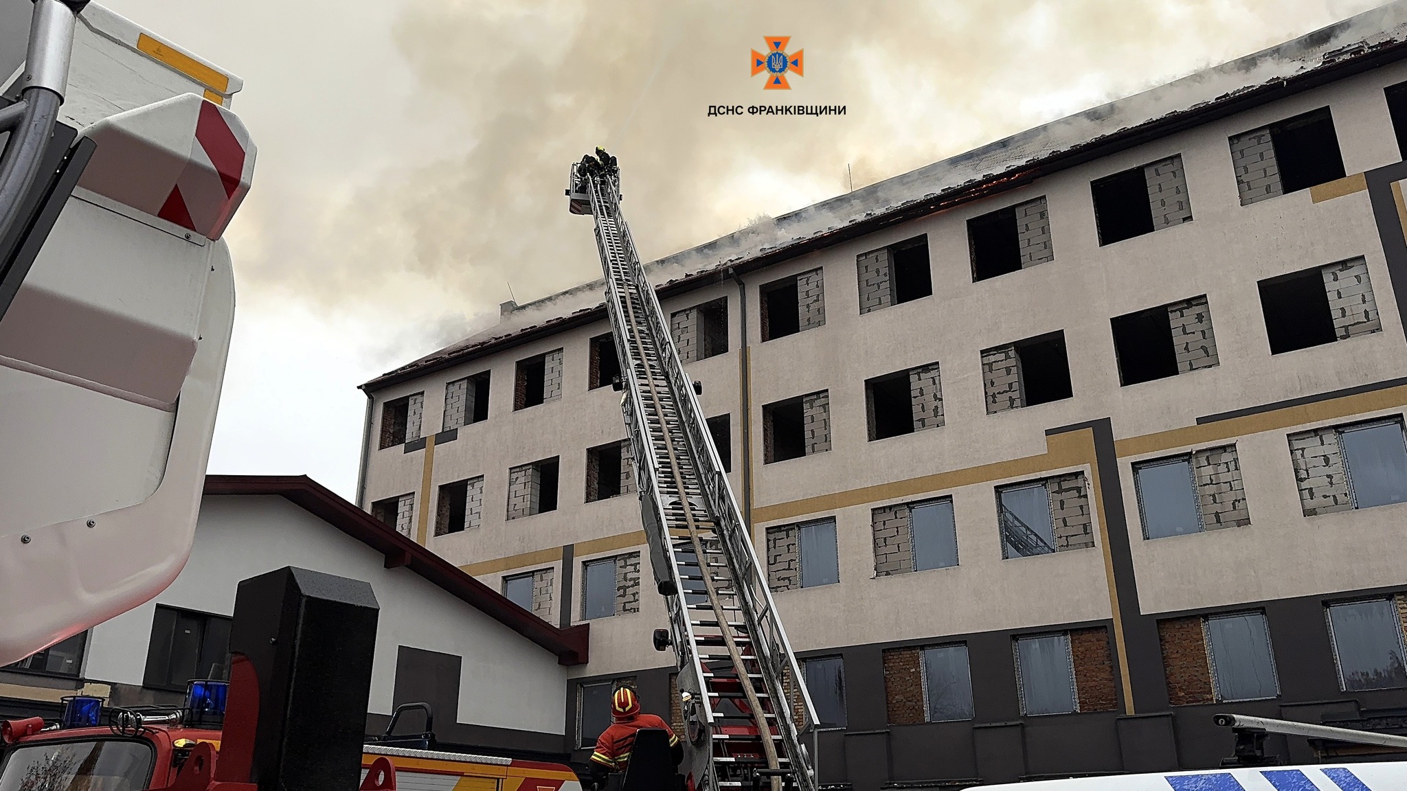 24 жовтня близько 12:50 у місті Івано-Франківську спалахнула масштабна пожежа в п’ятиповерховій новобудові. Загорілися будівельне риштування, ліфтова шахта та покрівля будівлі.