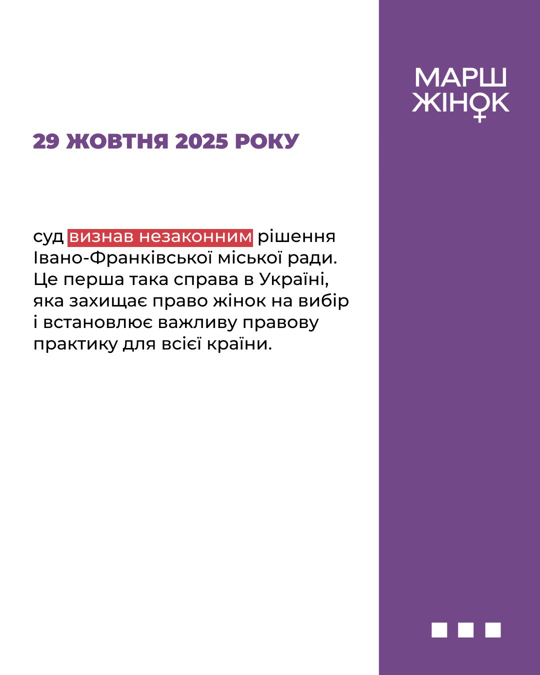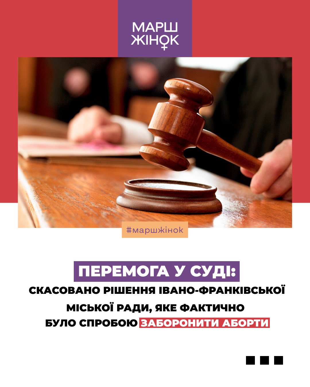 Івано-Франківський окружний адміністративний суд задовольнив позов правозахисної організації «Марш Жінок» і скасував рішення міської ради, яке фактично містило заклик до заборони абортів.