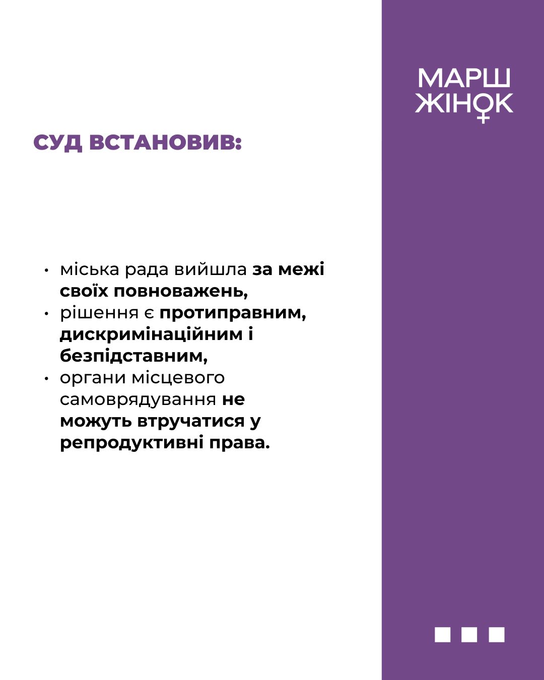 «Це перемога не лише для нас, а для всіх жінок в Україні. Конституційні права не можуть бути предметом політичних рішень», — йдеться у заяві організації.