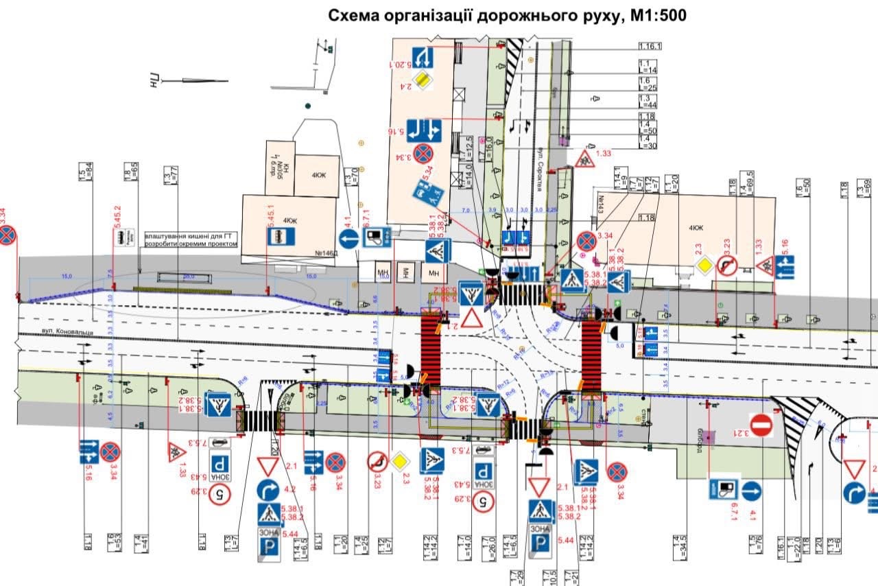 Будують новий світлофорний об’єкт — він заборонить лівий поворот до ТЦ та дозволить регулювати перехід пішоходів.