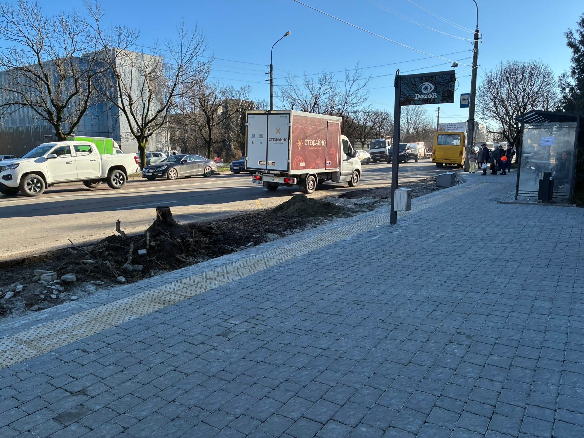 Навпроти ТЦ «Велмарт» зараз тривають роботи з облаштування заізноі кишені для громадського транспорту. Це один із важливих інфраструктурних проєктів на цій вулиці.