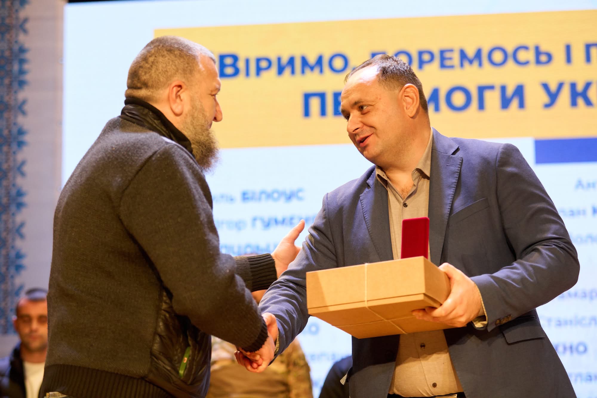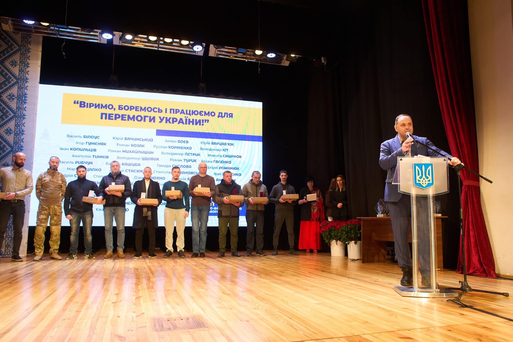 «Сьогодні маю за честь нагородити тих, хто без перебільшення пережив справжнє пекло — ворожий полон. Коли єдине, що підтримує у безвиході — це надія і бажання побачити рідних, повернутися в Україну. Це військовополонені, яким пощастило повернутися. І зараз вони з нами. Дякуємо за захист України! Честь вам!», — наголосив мер Руслан Марцінків.