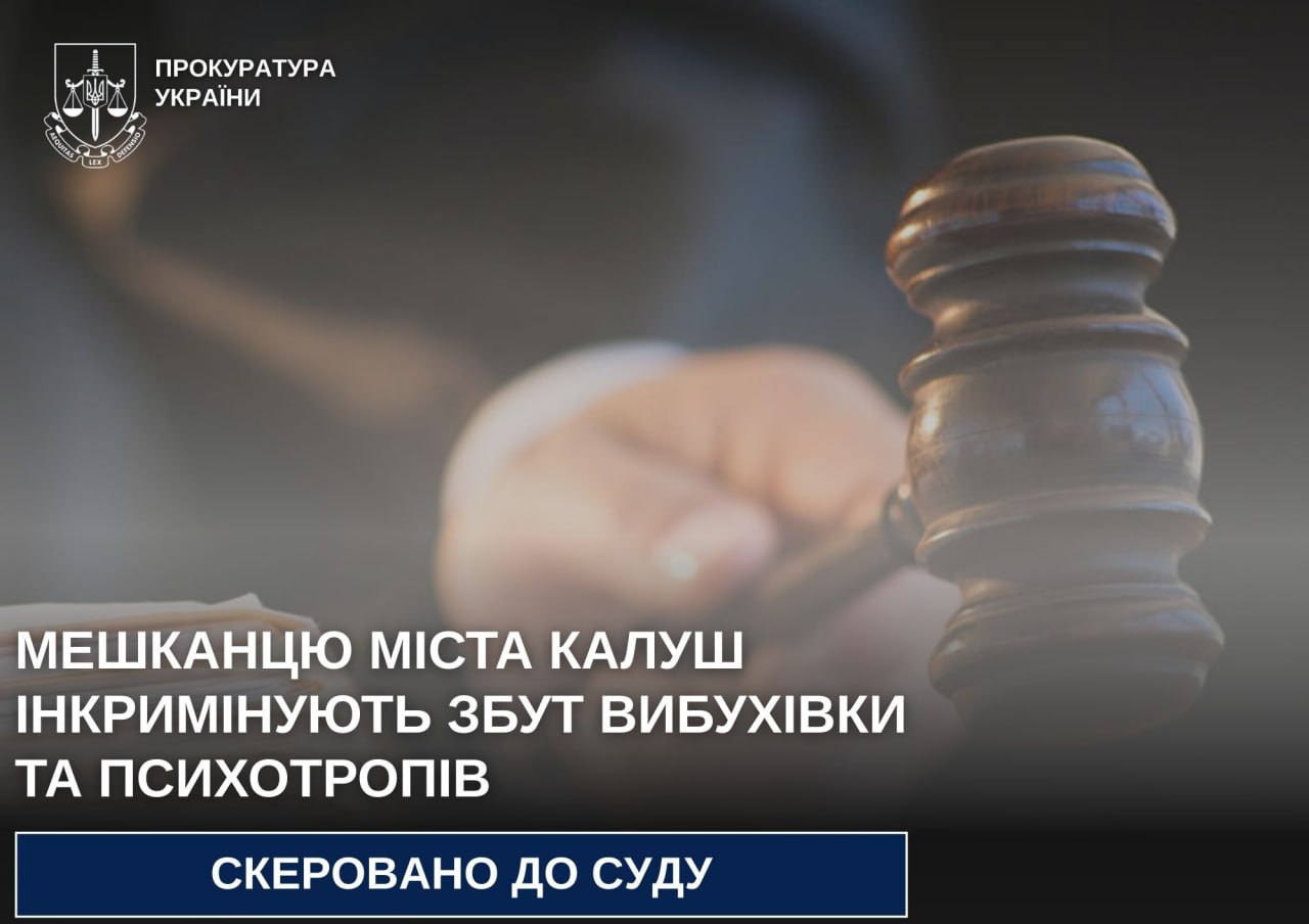За процесуального керівництва Калуської окружної прокуратури до суду скеровано обвинувальний акт у кримінальному провадженні щодо 41-річного мешканця міста Калуша за ч. 1 ст. 263 та ч. 2 ст. 307 КК України.