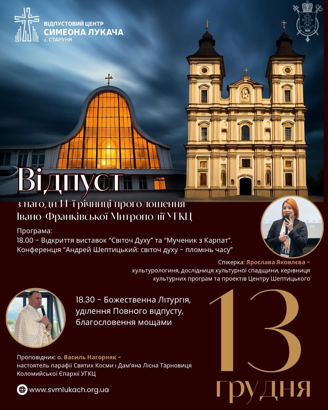 У суботу, 13 грудня, Івано-Франківська Архієпархія УГКЦ відзначатиме 14-ту річницю від визначної події — проголошення Івано-Франківської Митрополії та піднесення Єпархії до гідності Архієпархії.