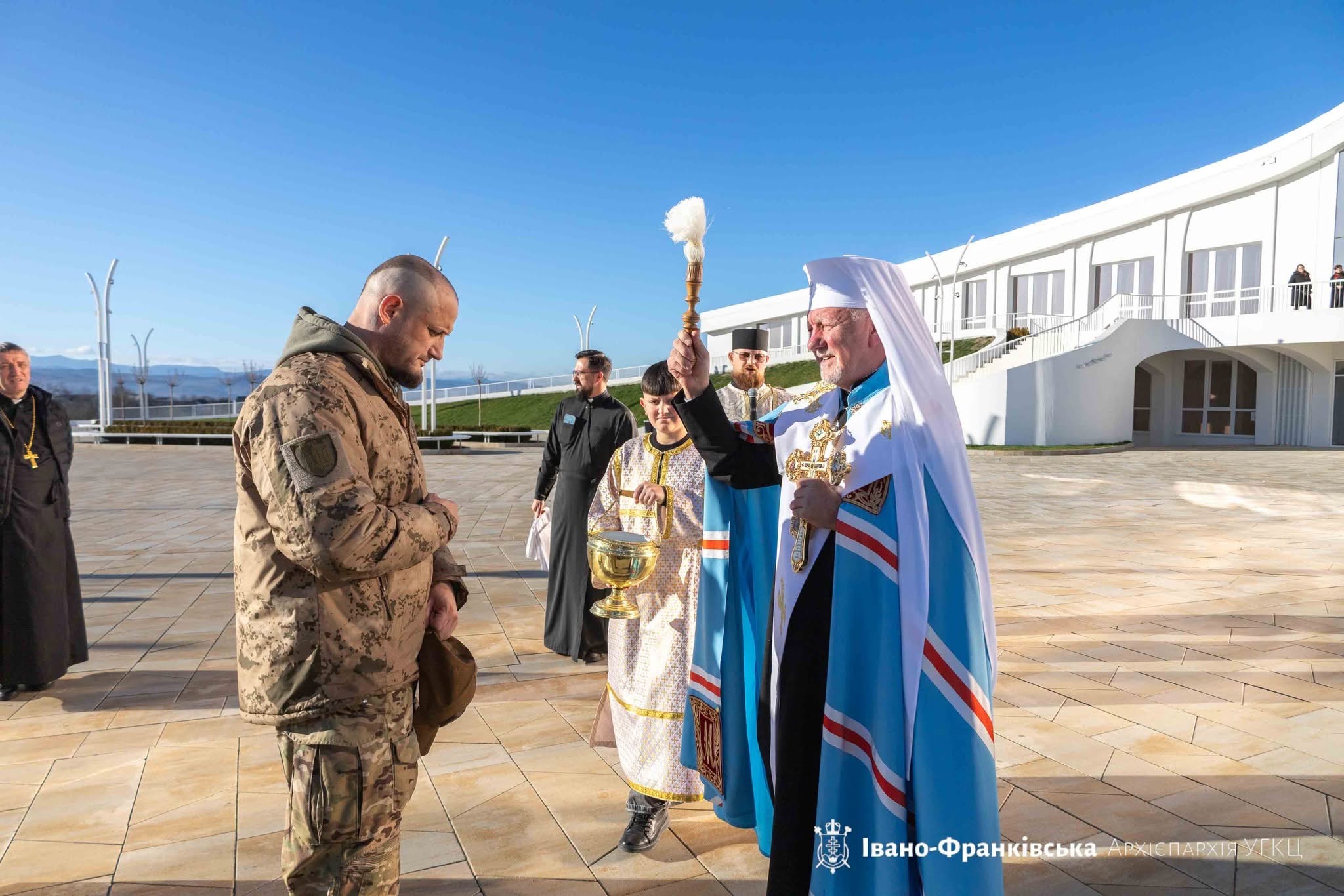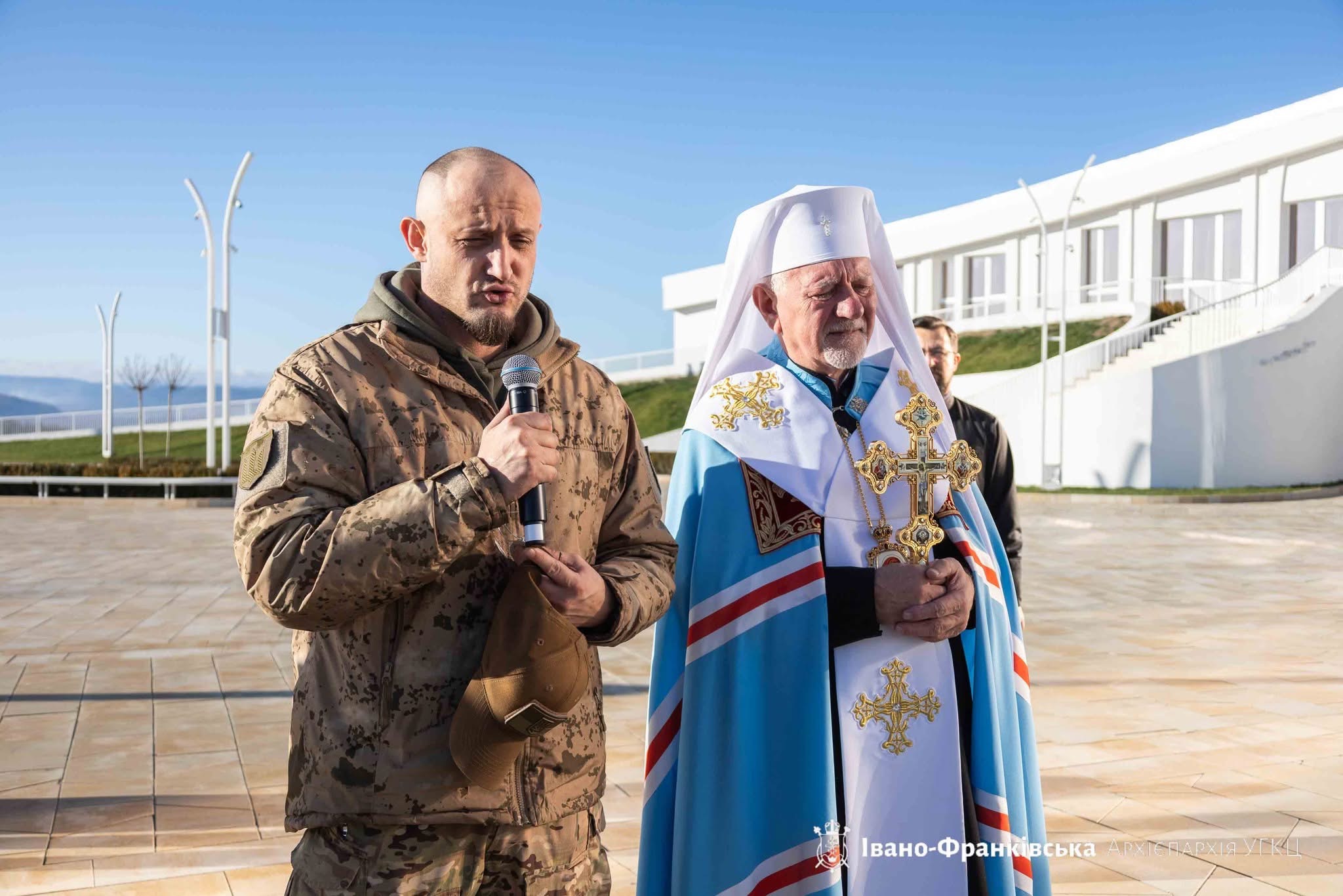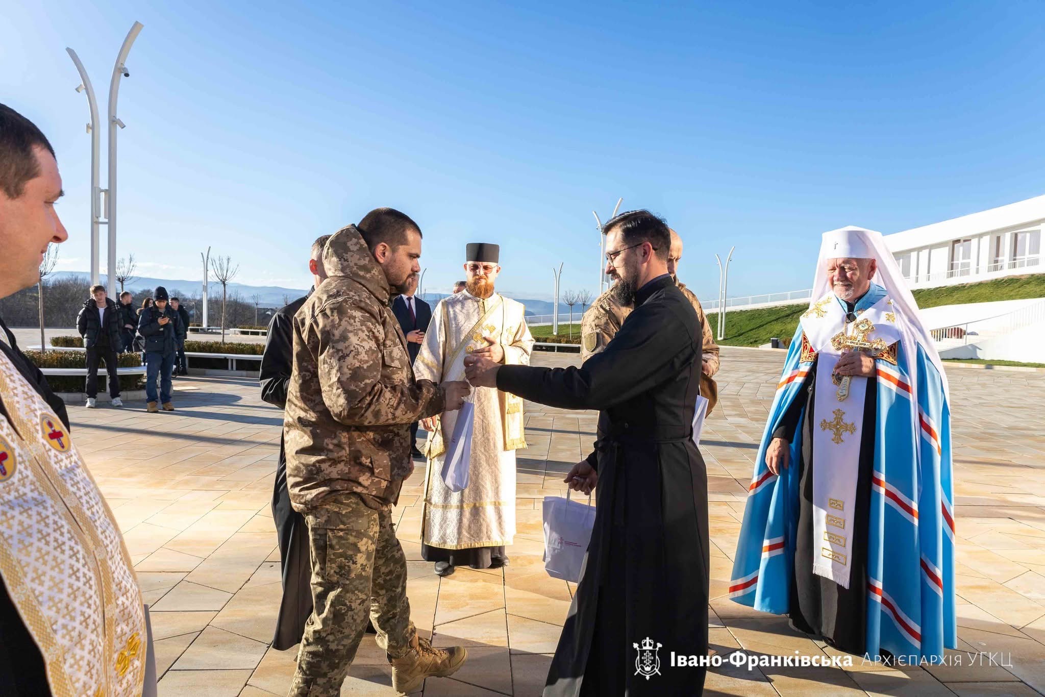 Також до присутніх звернувся Захисник України, дякуючи за постійну молитву та всіляку підтримку українського війська. На завершення Архієпископ поблагословив усіх освяченою водою та передав Воїнам пам’ятні подарунки від Відпустового центру блаженного Симеона Лукача.