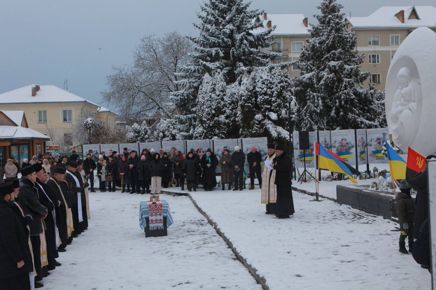 Разом із духовенством молилися родини полеглих, мешканці громади та гості міста. Завершився захід спільною різдвяною колядою — як символом пам’яті, вдячності та єдності перед подвигом тих, хто віддав своє життя за свободу і незалежність України.