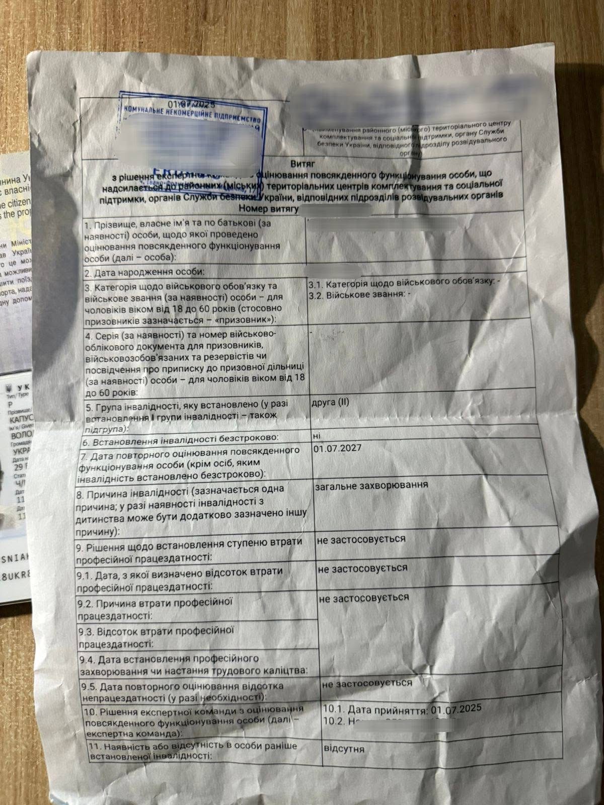 На контроль разом з паспортним документом він надав пенсійне посвідчення особи з інвалідністю та витяг з рішення експертної команди. Втім, у ході вивчення документів прикордонники встановили, що чоловік не міг отримати їх у законний спосіб. На момент одержання пенсійного посвідчення та під час зазначеного стаціонарного лікування він перебував за межами України. Також виявлено ще кілька ознак недійсності посвідчення та інших документів.