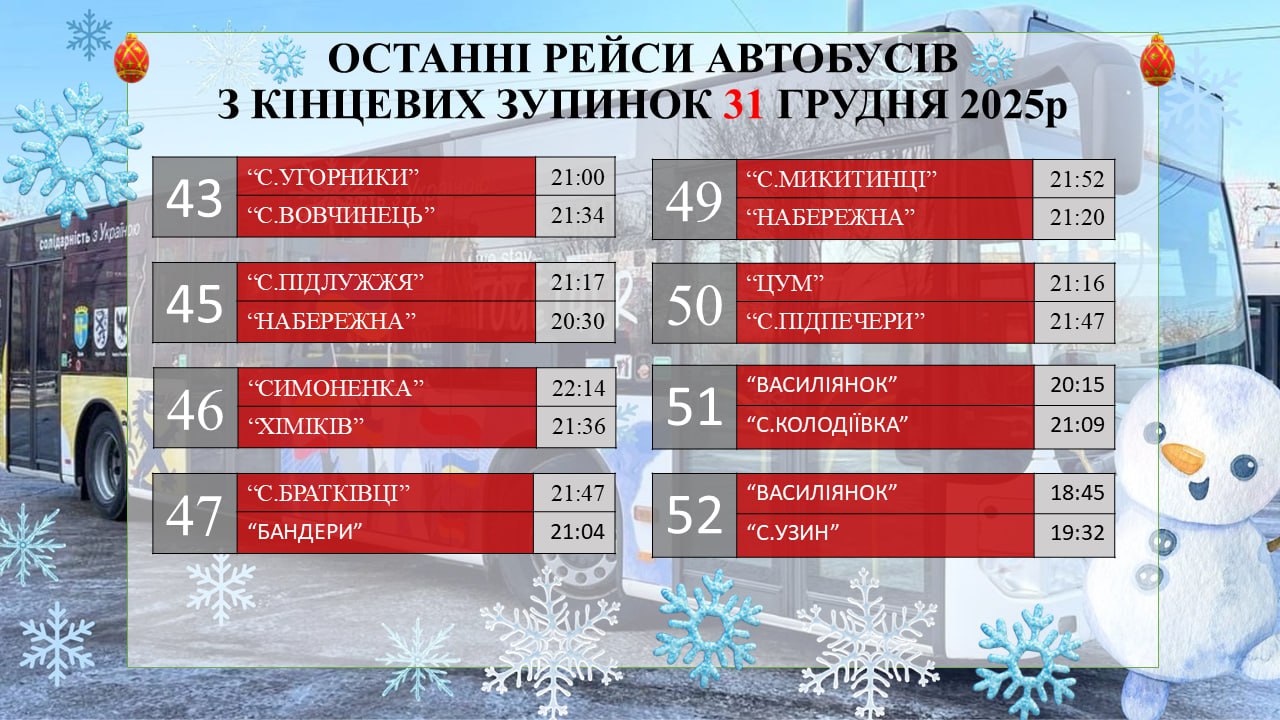 Святкові зміни у русі комунального транспорту Івано-Франківська: 31 грудня та 1 січня