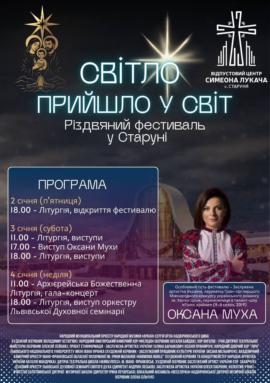 З  2 по 4 січня 2026 року у Відпустовому центрі блаженного священномученика Симеона Лукача, що в с. Старуня, пройде І Різдвяний фестиваль «Світло прийшло у світ».