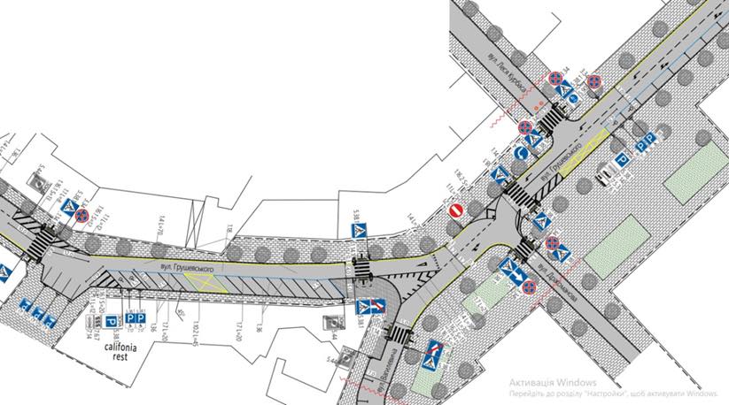 Проєктом передбачено облаштування «антикишені» на перехресті з вулицею Вагилевича, що покращить оглядовість і безпеку для пішоходів. Також планують пониження бордюрів у районі ресторану «Десятка» та дотримання нормативних відстаней від припаркованих автомобілів до пішохідних переходів. Окремо передбачені спеціальні місця для завантаження та розвантаження транспорту, що особливо актуально для бізнесів у центральній частині міста.
