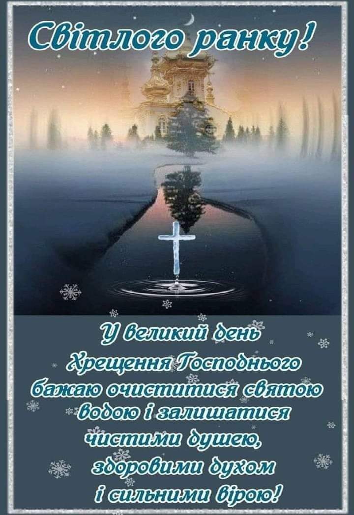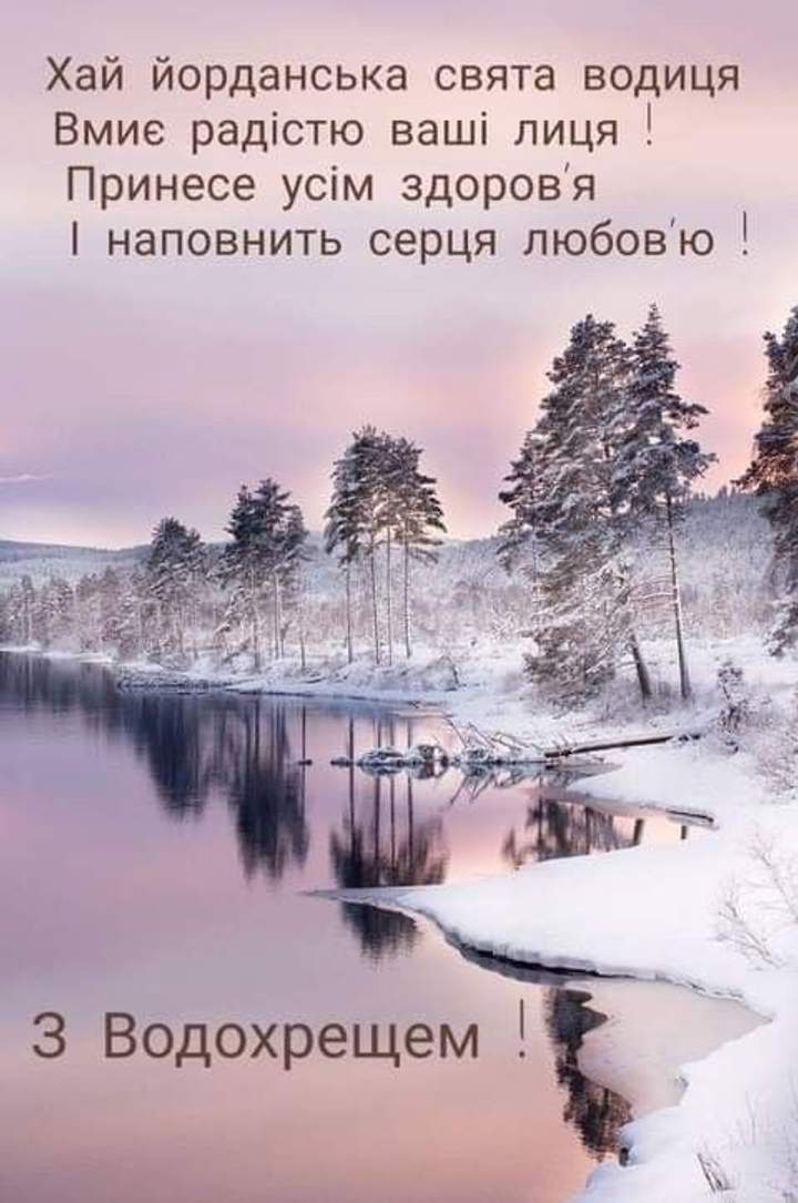 Водохреща — це час очищення й благословення. Хай Господня благодать зігріє твоє серце, хай свята вода принесе силу й захист від усякого зла. Бажаю, щоб у твоєму житті завжди було місце для радості, щирих усмішок і теплих зустрічей. Нехай цей день стане початком світлого й щасливого року.