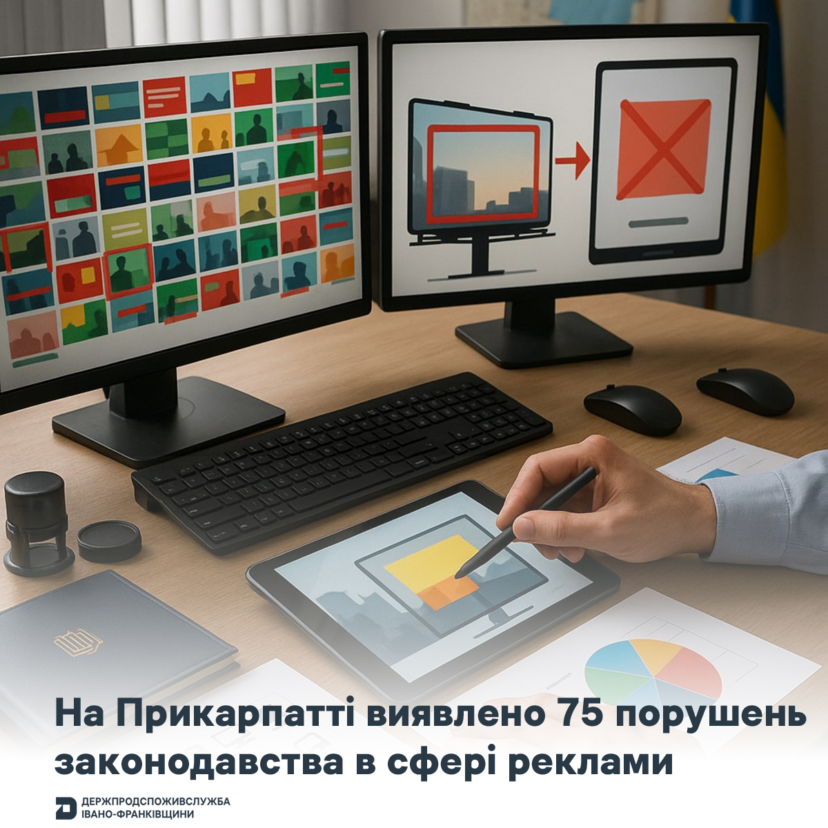 Упродовж 2025 року фахівці Держпродспоживслужби в Івано-Франківській області здійснювали системний контроль за дотриманням вимог Закону України «Про рекламу». Моніторинг охопив як традиційні рекламні носії, так і цифрові платформи.