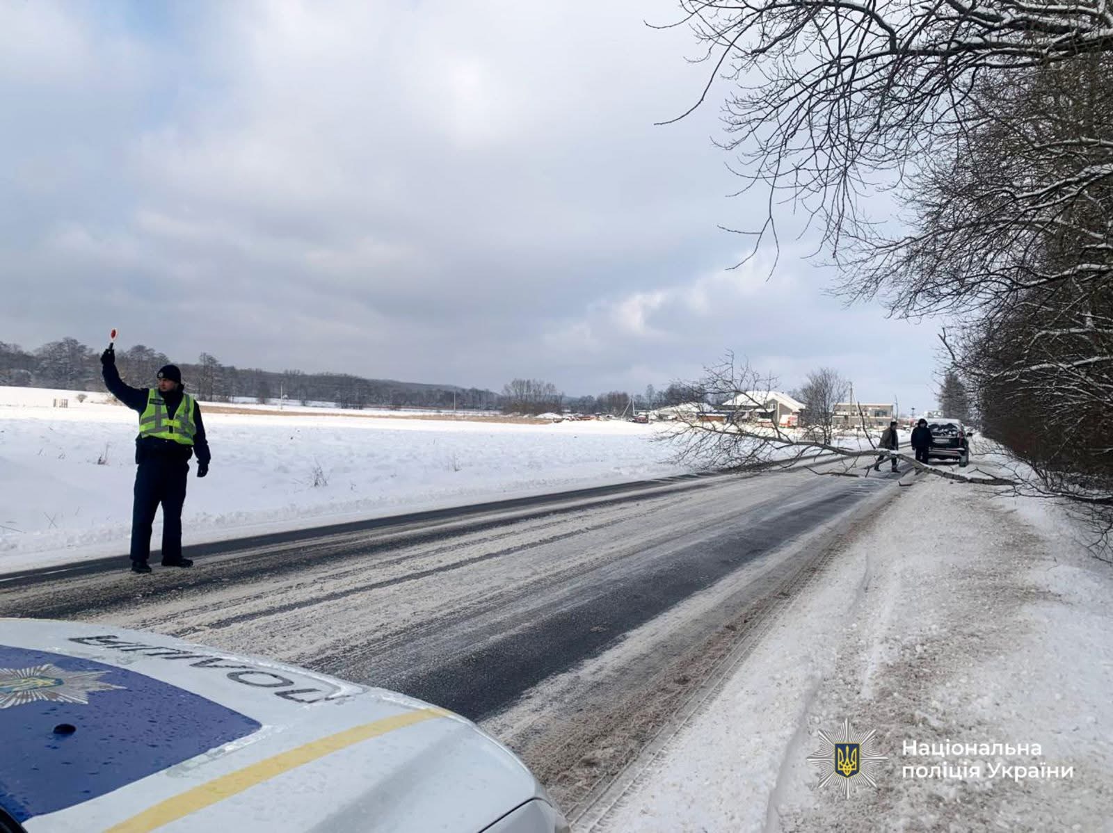 Поліцейські на місцях допомагають учасникам дорожнього руху, які опинилися у складних умовах, зокрема сприяють виїзду транспортних засобів зі снігових заметів, здійснюють буксирування автівок та вживають заходів для забезпечення безпеки на дорогах.