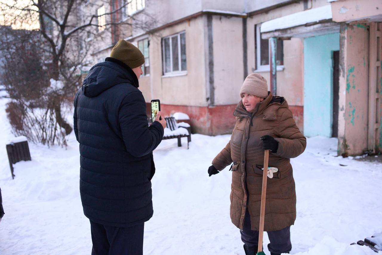 Показовою стала ситуація, яку міський голова разом із заступником побачили під час ранкового об’їзду міста. У дворі багатоквартирного будинку сніг прибирала жінка пенсійного віку.