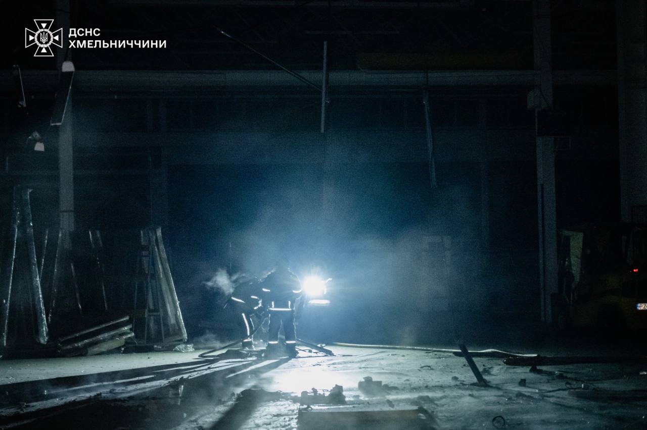 Внаслідок російського удару на одному з підприємств у Хмельницькому районі виникла пожежа. Загоряння оперативно ліквідували підрозділи ДСНС. Також рятувальники загасили кілька осередків займання на ураженому об’єкті.