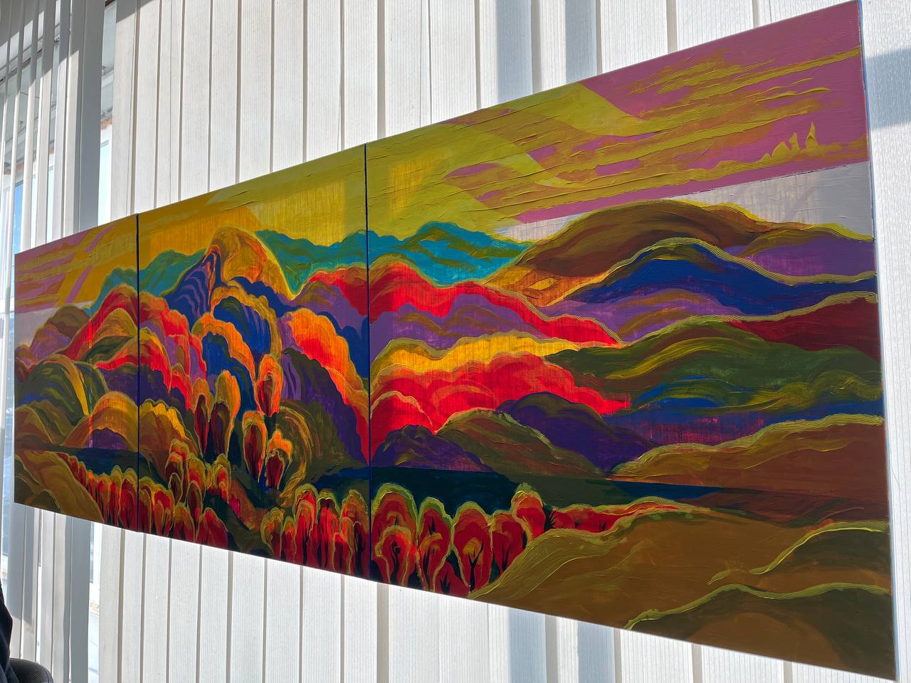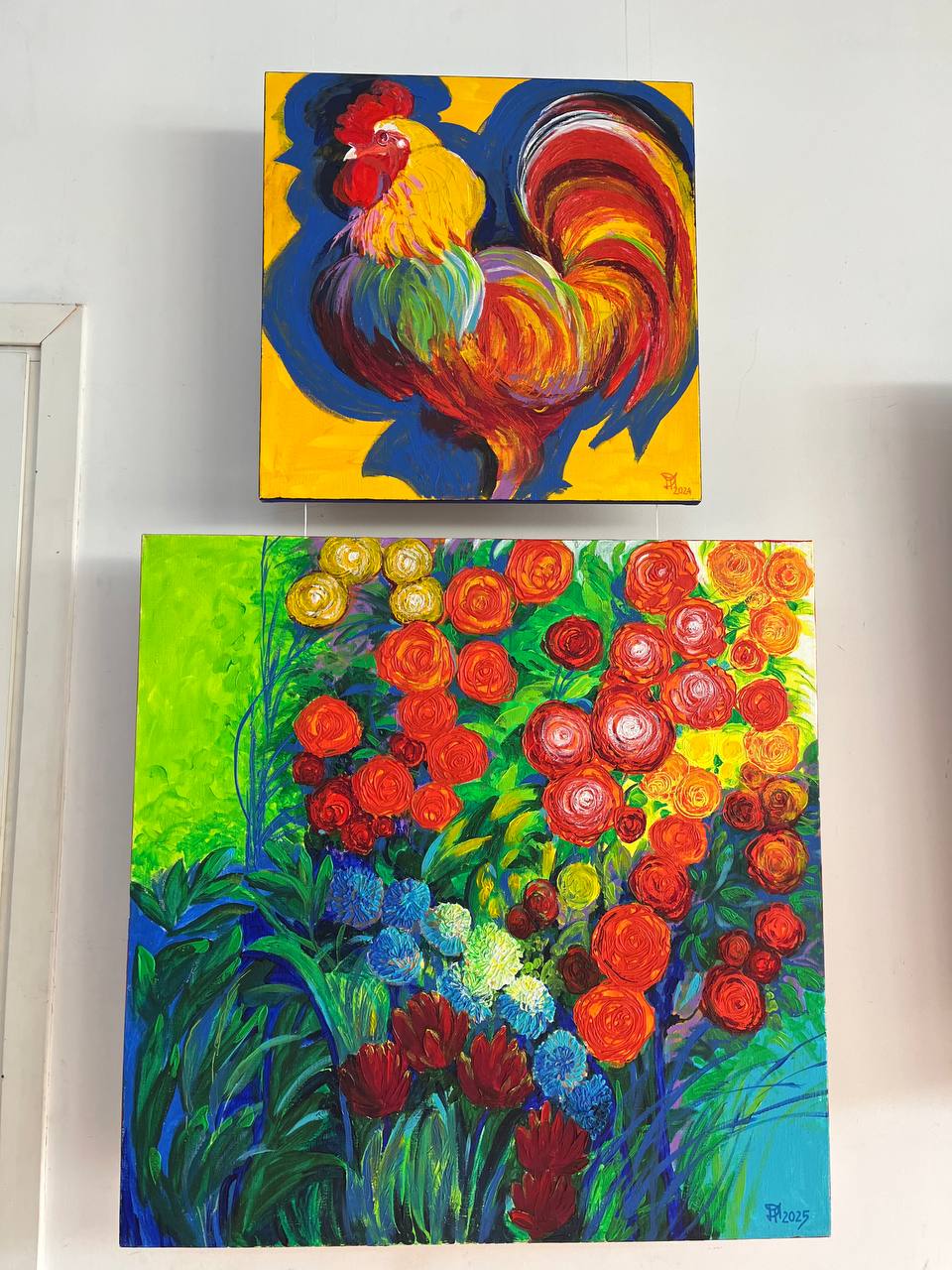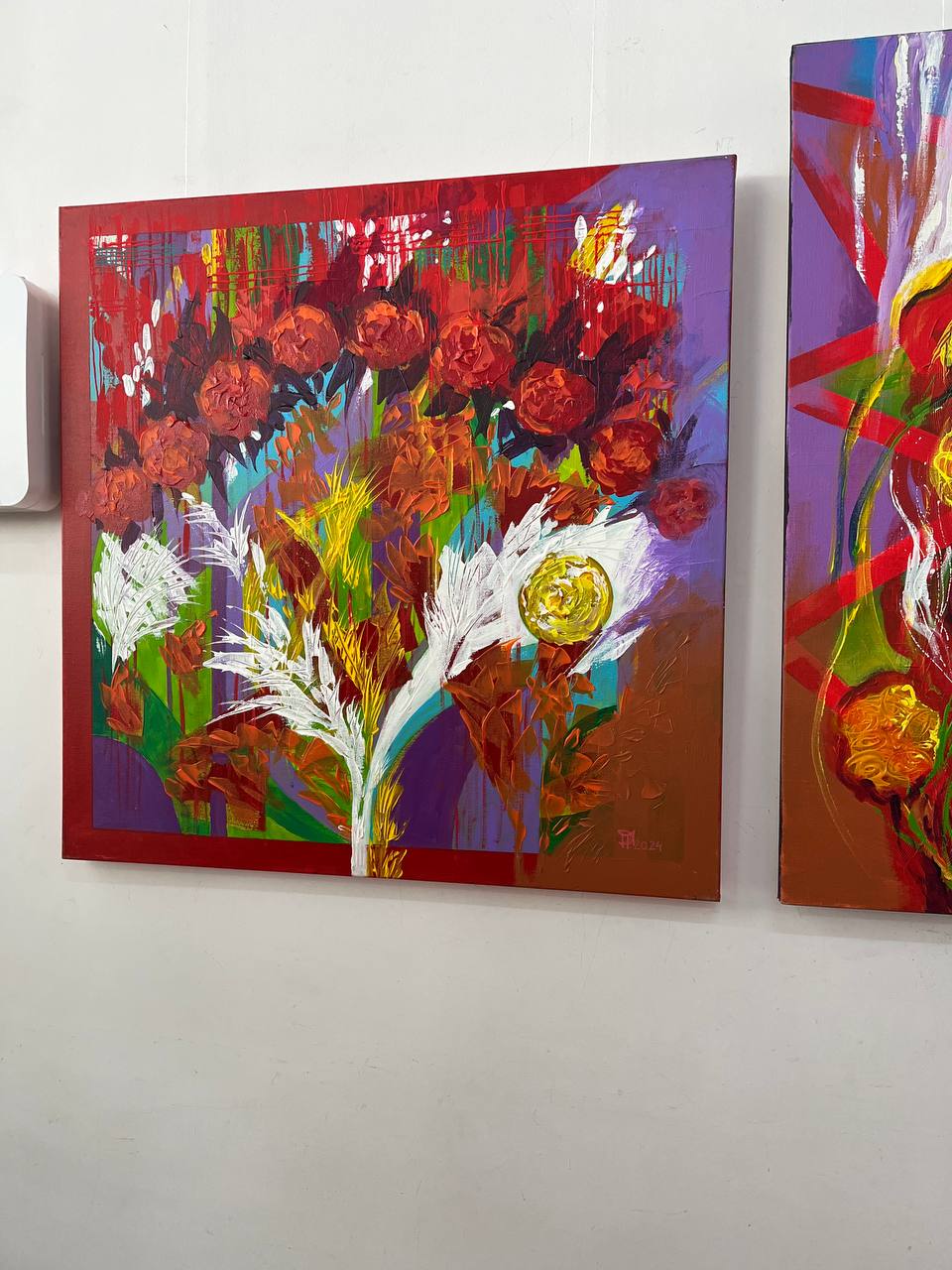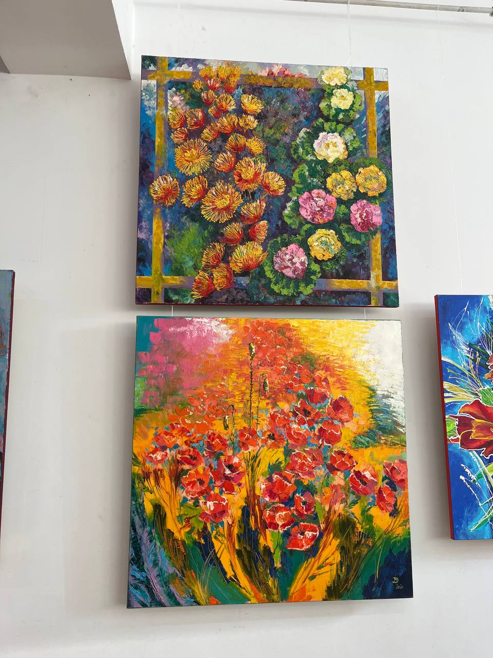 «Коли заходиш у зал — це справжній вибух кольору. Домінує червоний, але водночас є роботи дуже спокійні, зимові, стримані. Тут є напруга, біль, але й життєствердність. Глядач обов’язково знайде тут “свою” роботу».