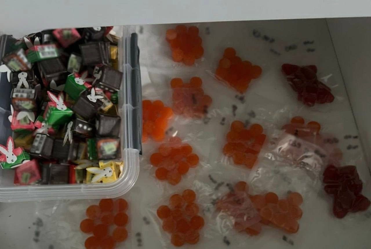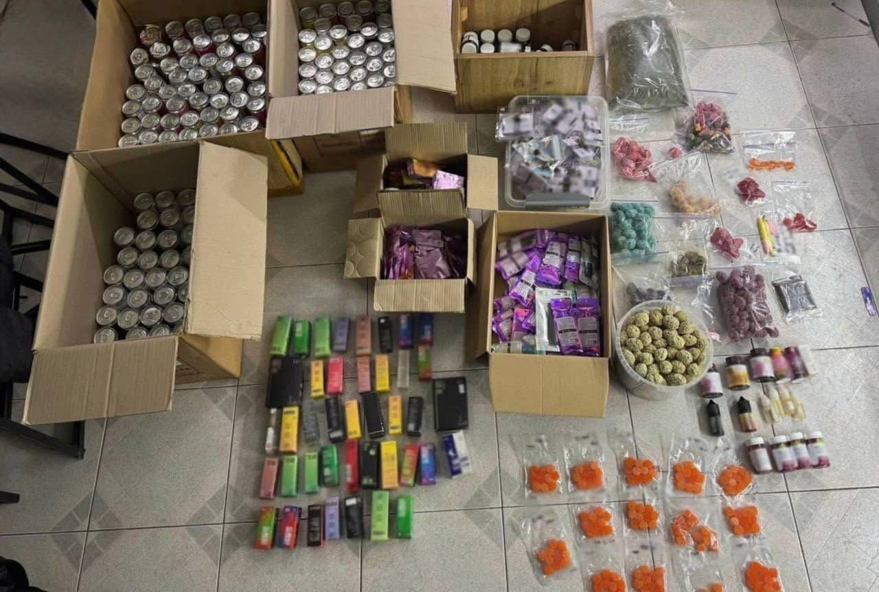 – 115 банок з екстрактом канабісу, зіп-пакети з псилоцибіновими грибами, психотропні речовини MDMA, LSD та кетамін;