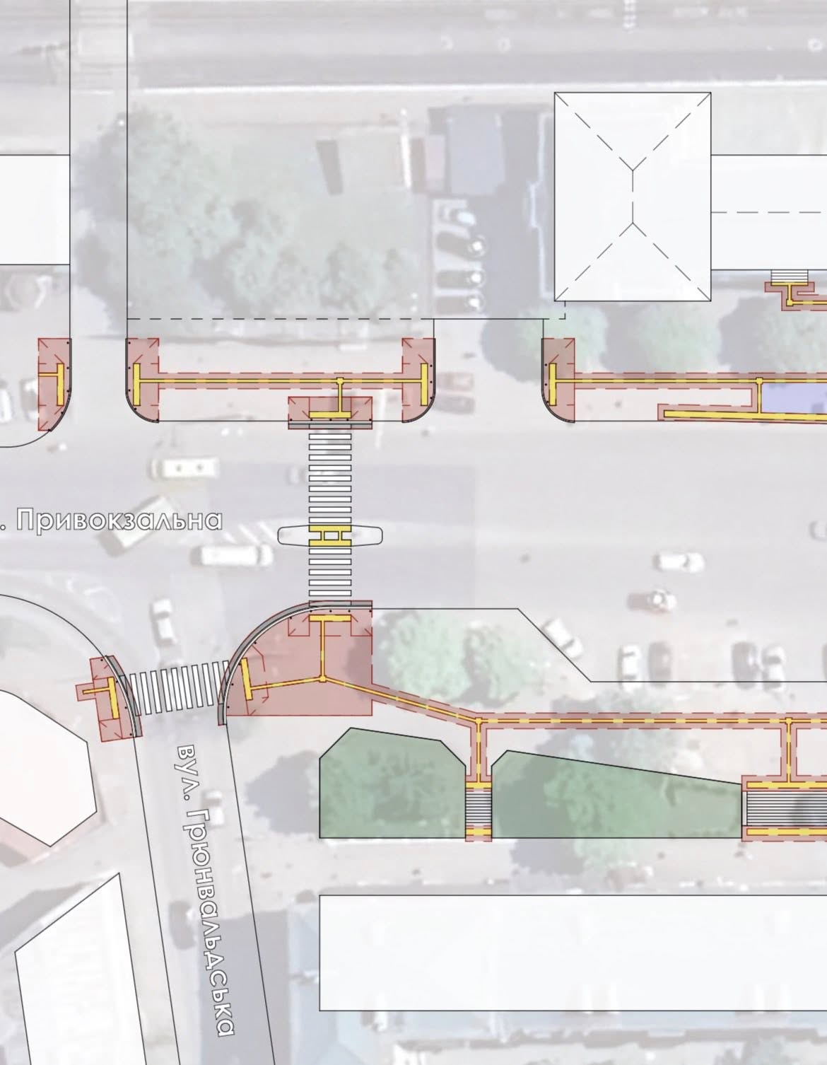 замінити покриття пішохідних переходів на асфальтне, що полегшить пересування для людей на кріслах колісних та пасажирів із валізами, а також дозволить нанести чітку й довговічну дорожню розмітку;