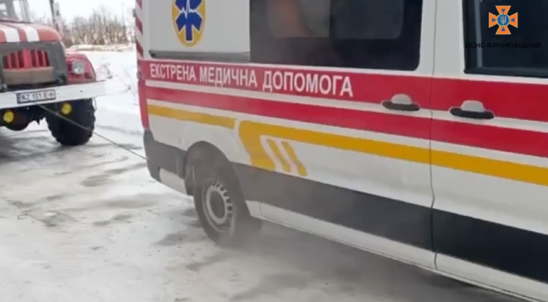 27 січня о 09:33 до Служби порятунку надійшло повідомлення про необхідність буксирування автомобіля екстреної медичної допомоги в селі Угорники Отинійської територіальної громади Коломийського району.