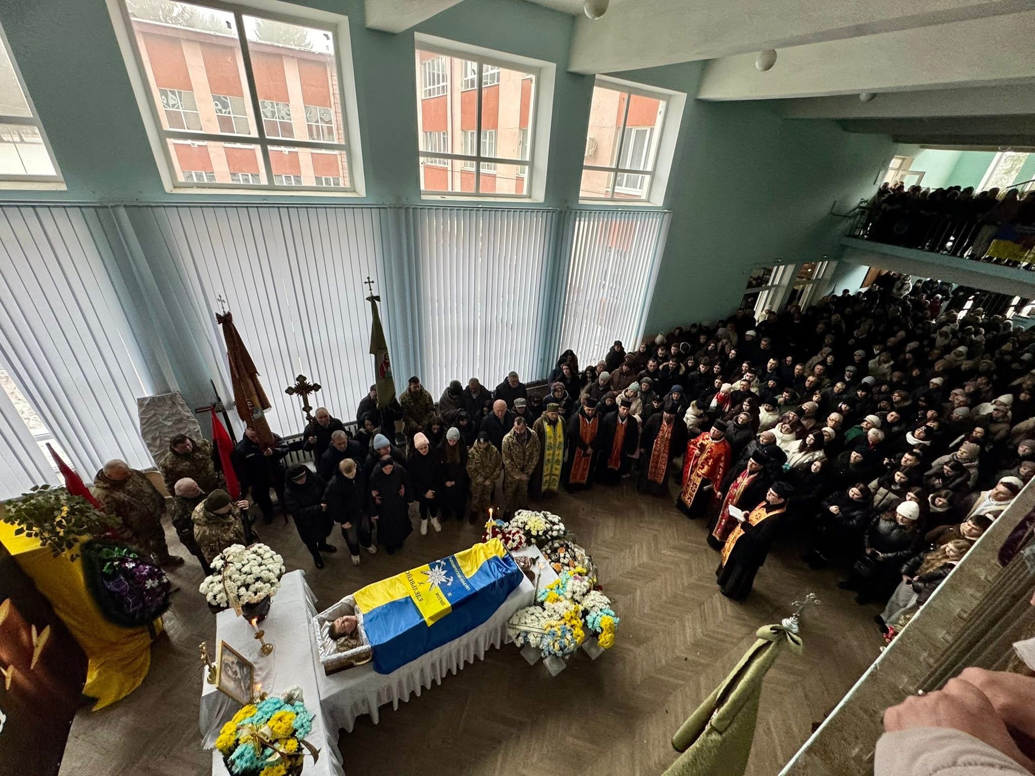 Прощальна церемонія відбулася у Палаці культури, де разом зі священнослужителями громади звучала молитва за упокій душі Захисника. Зала була наповнена болем, тишею й невимовною вдячністю. Тут прощалися з хлопцем, якому ще жити й жити…