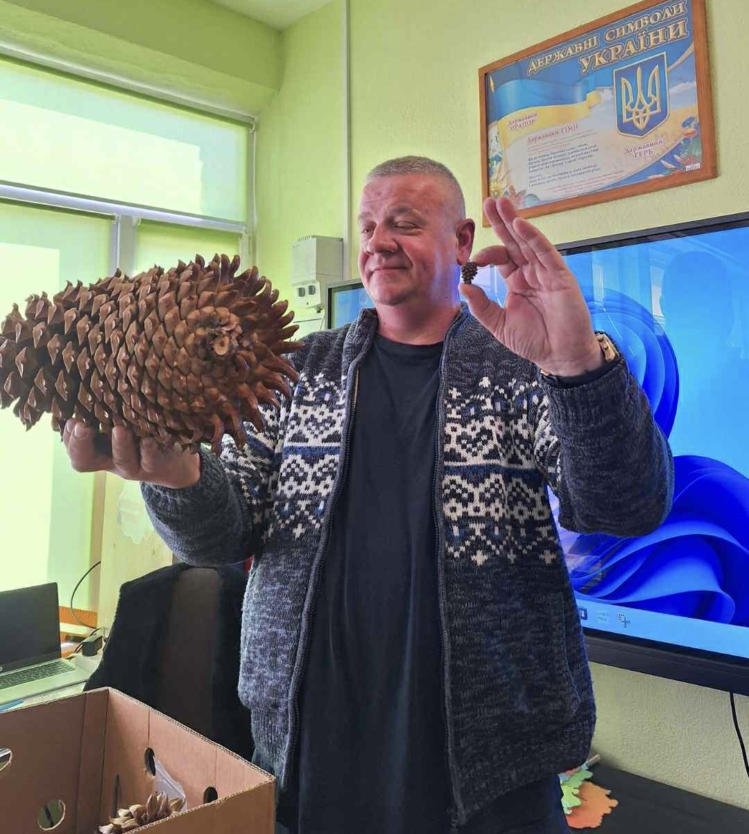 «Мало хто знає, що у світі є шишки вагою до 3,5 кілограма або довжиною понад 50 сантиметрів. Коли діти бачать це наживо — очі просто горять», — усміхається Олександр.