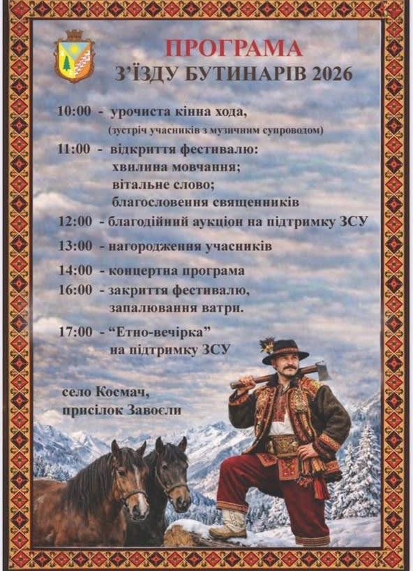 У селі Космач, присілок Завоєли, відбудеться З’їзд бутинарів – 2026 — автентична етнокультурна подія, що поєднує давні гуцульські традиції, мистецтво та благодійність задля підтримки українських захисників.