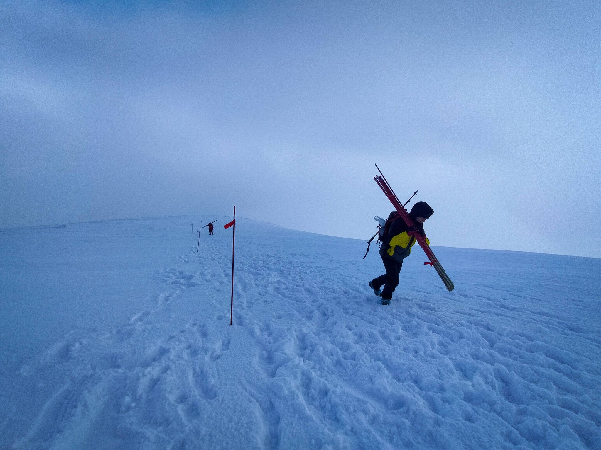 Зимовими орієнтувальними стовпчиками маркована верхня частина синього маршруту від Говерляни (вище кам’яного тура на висоті 1800 м) до самої вершини.