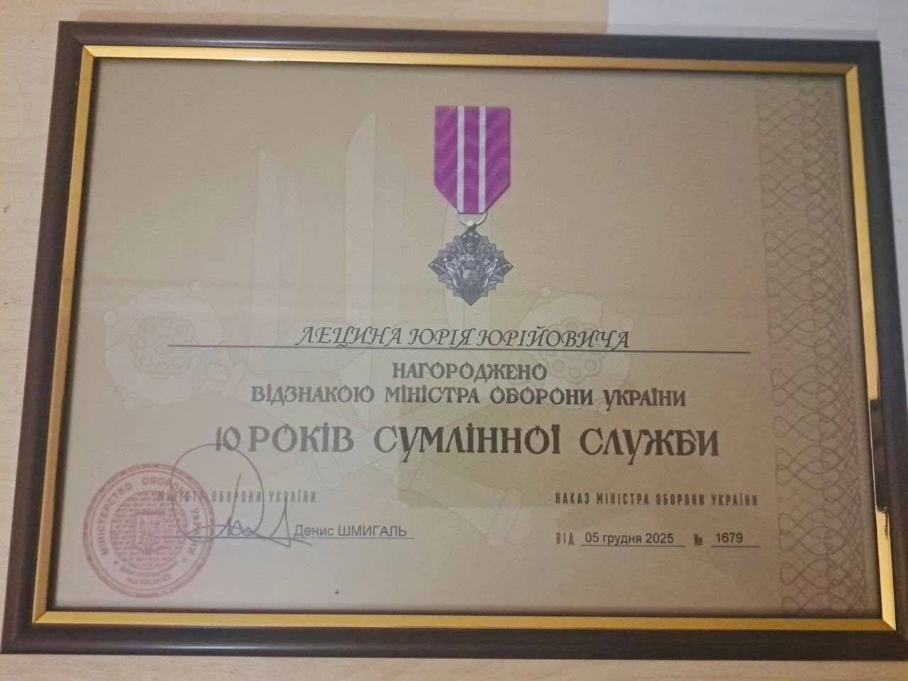 Офіцера з Дзвиняча Юрія Лецина нагородили відзнакою Міністерства оборони України