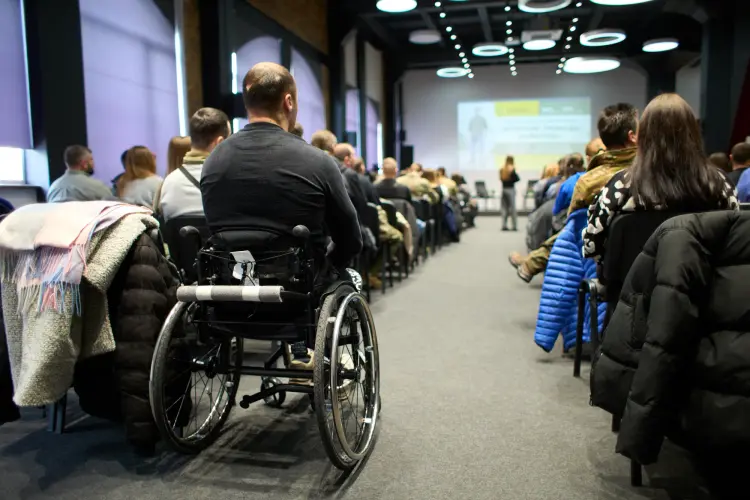 Учасник однієї з панелей, ветеран, проєктний менеджер платформи «Тепле місто» Андрій Волик працює у ветеранському напрямі. Але, пригадуючи свій досвід, зауважує, що супровід та консультація не буде зайвою для кожного, хто повертається з війни.