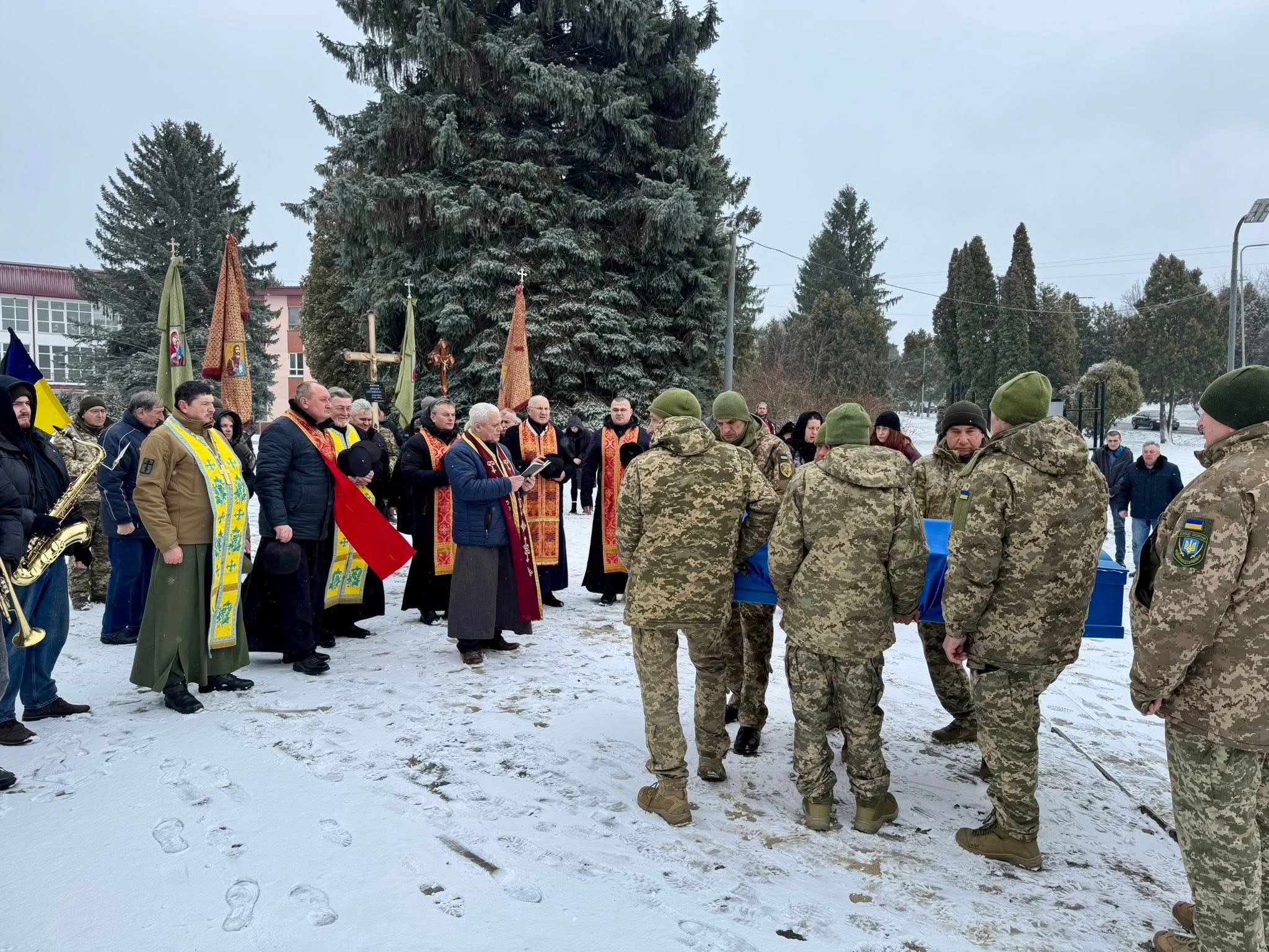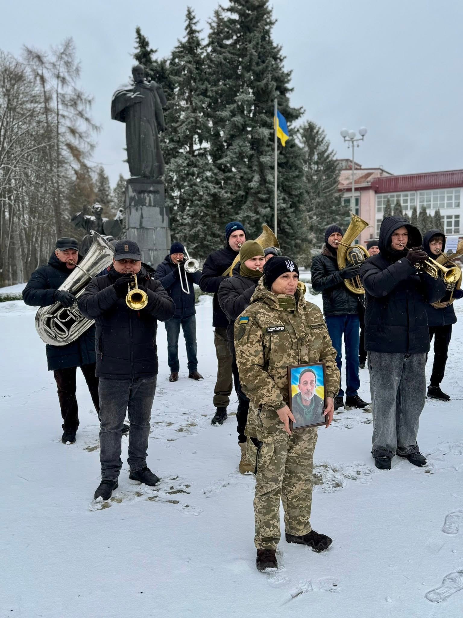 Траурний кортеж із тілом Захисника громада зустріла навколішки. Муніципальний оркестр віддав останню шану воїну, чиє життя забрала війна. Урочисті й водночас пронизливо болісні звуки лунали над містом, нагадуючи про високу ціну нашої свободи.