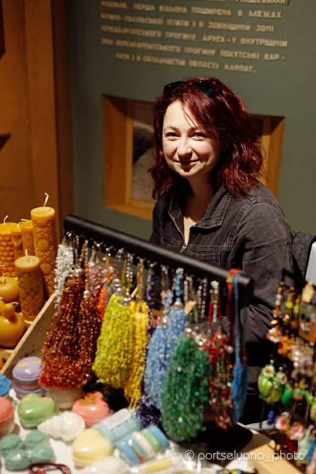 «Ми хотіли, щоб там було багато різних робіт. До нас долучилися майстрині, чиї роботи ми ставили на сайт. І я тоді подумала: спробую щось плести з бісеру. Чесно кажучи, мені здавалося, що для цього треба мати дуже спокійний характер. А я — зовсім не спокійна», — усміхається вона.