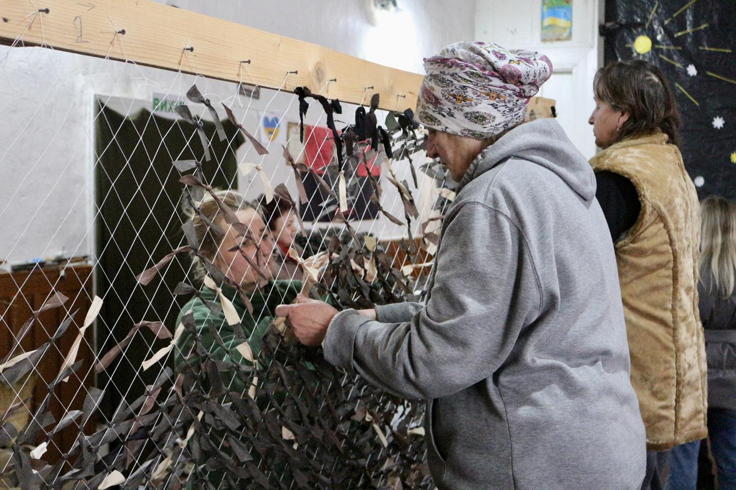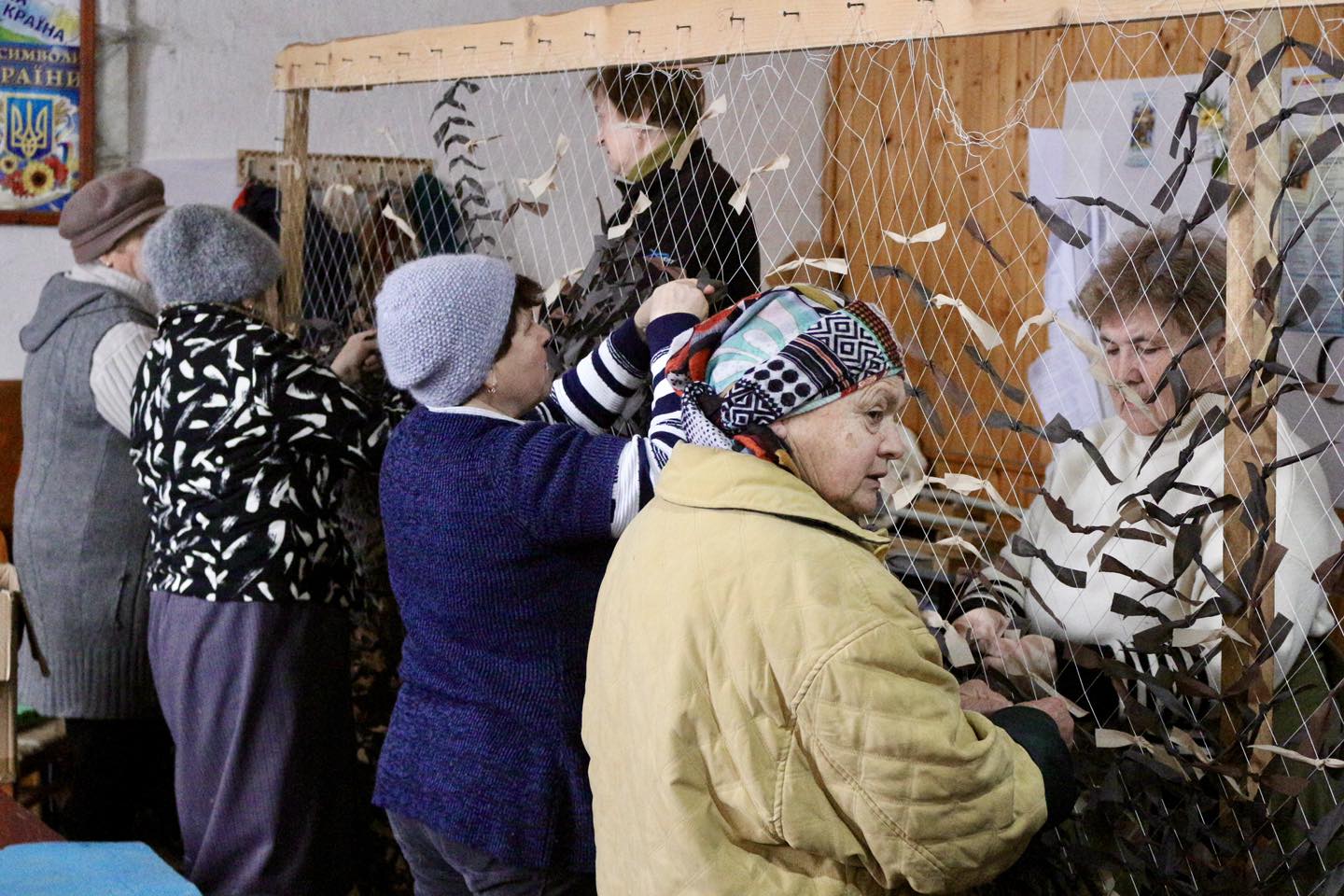 У середньому за день тут виготовляють дві шестиметрові сітки — вузлик за вузликом, не пропускаючи жодного квадратика. Адже кожна з них може врятувати чиєсь життя. Навіть у сильні морози робота не зупинялася — староста села Ірина Муцак дбала про дрова, щоб у приміщенні було тепло.