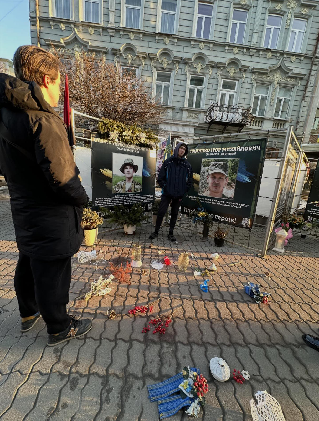 У центрі Івано-Франківськ стався обурливий інцидент біля меморіалу з фотографіями загиблих захисників України. Невідомий чоловік влаштував безлад біля кубів зі світлинами полеглих Героїв — розбивав лампадки та зірвав пам’ятний вінок.